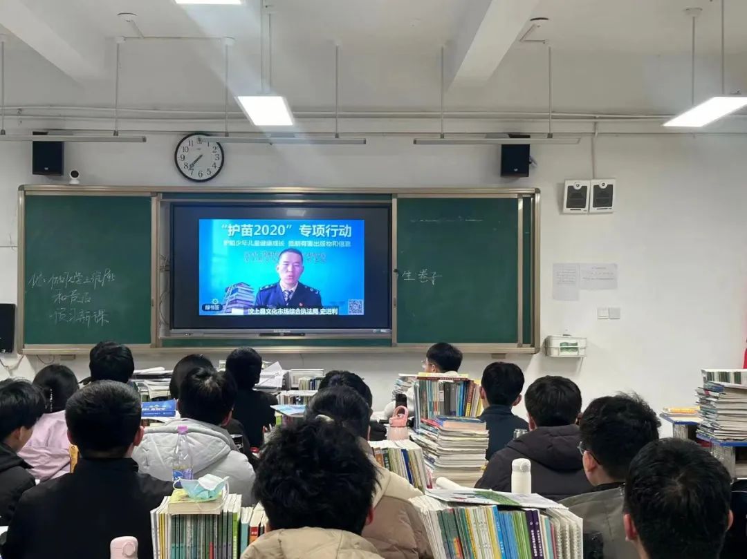 开展“护苗”公开课:县文化市场综合执法大队二中队队长史进利带领我局志愿服务队走进汶上县第一中学,走进课堂,深入浅出地为青少年讲解“扫黄打非”基本知识、盗版书籍辨别办法,结合当前“护苗”工作实际,播放了我局录制设计的《“扫黄打非·护苗”公开课》宣传视频,视频语言诙谐幽默论述生动详实,给同学们留下了深刻印象。