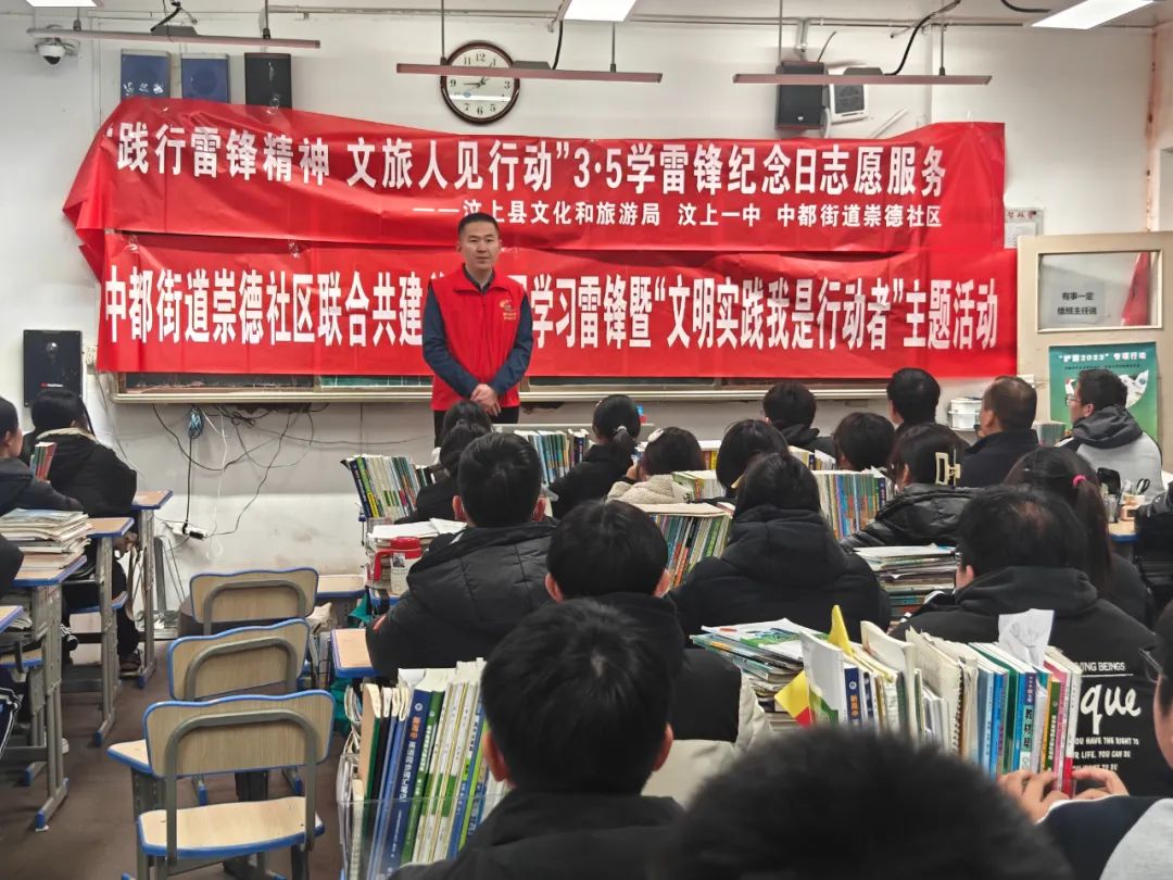 为深入学习雷锋同志先进事迹,贯彻落实习近平总书记对深入开展学雷锋活动的重要指示精神,大力弘扬“奉献、友爱、互助、进步”的志愿服务精神,切实营造“学雷锋办实事见行动”的浓厚氛围,结合文旅行业实际,县文化和旅游局联合汶上县第一中学、汶上县中都街道崇德社区开展“践行雷锋精神 深化文旅惠民”——“3·5”学雷锋纪念日志愿服务系列活动。县文化和旅游局二级主任科员王斌参加活动。