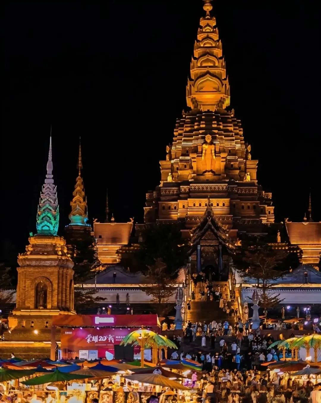 之后乘车前往【告庄西双景】打卡“小泰国”;这里也是大金三角区域规模最大、最具南亚、东南亚特色的夜间集市,澜沧江畔,金塔佛寺之下,一个华灯初上、热闹非凡的星光夜间集市,满足你对人间烟火的所有幻想。后入住酒店。