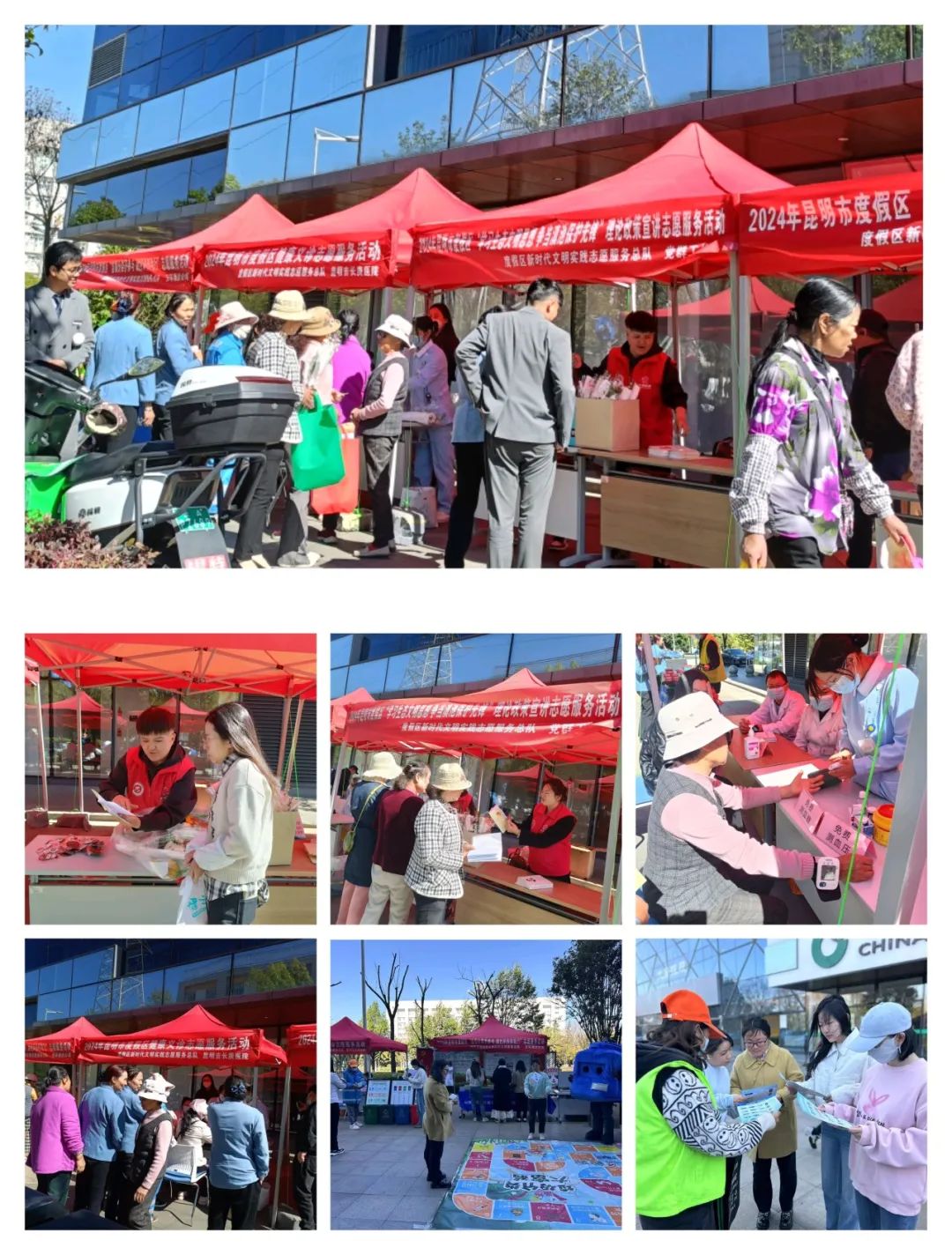 广场上,志愿服务爱心集市在春风中温暖开张了,附近的居民闻讯纷纷出门“赶集”。卫生环保志愿服务分队通过开展“分类大富翁”、分类知识问答、分类投投看等小游戏,以寓教于乐的方式带领市民一起学习垃圾分类小知识;理论宣讲志愿服务队采用现场讲解、知识问答等方式带领市民学习习近平生态文明思想、《云南省滇池保护条例》《昆明市文明行为促进条例》等内容,邀请大家分享生活中保护滇池和文明健康生活的小妙招;科普志愿服务分队邀请辖区银行志愿者们通过发放宣传资料、现场讲解等形式,揭秘金融、电信诈骗十大手段,提升市民的防范意识守护好市民的“钱袋子”;昆明吉长庚医院志愿服务队为市民带来了测量血压、血糖、健康宣教、健康咨询、急救科普等健康义诊。同时活动现场志愿者们还精心准备了鲜花、海鸥冰箱贴、扭扭棒花束等小礼品,赠予参与活动的热心市民。志愿者们匆忙地来回穿梭,热情地向往来市民讲解和引导服务。