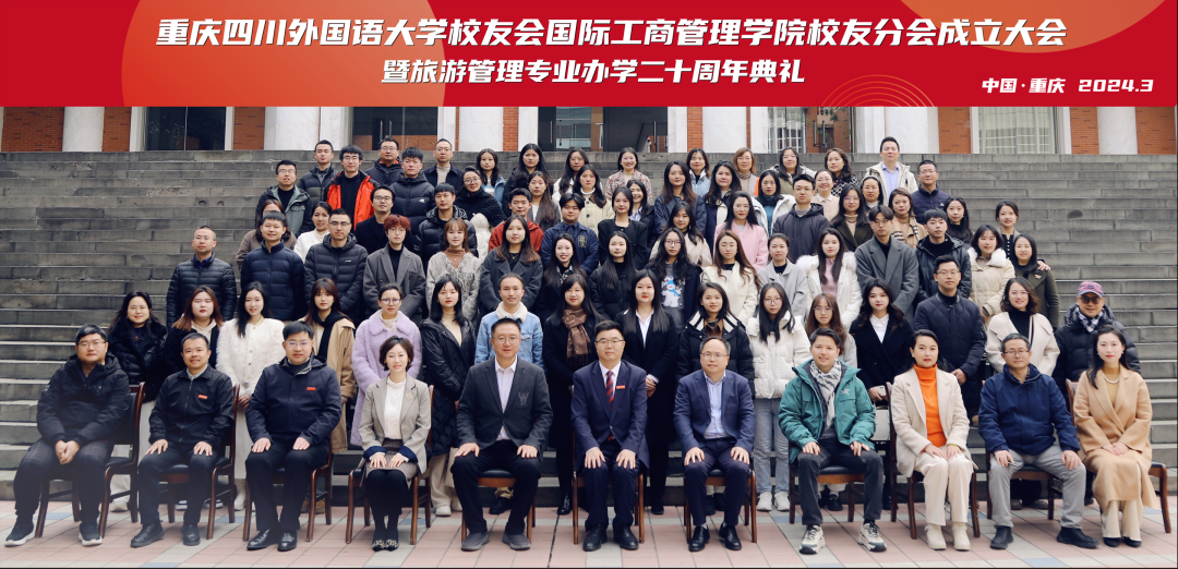 四川外国语大学校长董洪川、党委常委、副校长严功军,校地合作处(校友办公室)处长蒋晓丽,新加坡阿朗斯投资集团主席廖洪海、重庆锦渝文化旅游(集团)有限公司董事长罗宇、巴西Nordeste pecuária集团总裁汪玮、中国邮政储蓄银行重庆永川分行副行长王朕科、重庆冠达世纪邮轮酒店管理中心总经理张蕊、副总经理刘公蓉,学院党政领导罗先明、代彬、王婷,历届校友、友好合作单位、兄弟院校代表和国际工商管理学院教师、在校学生代表欢聚一堂,共启新程。