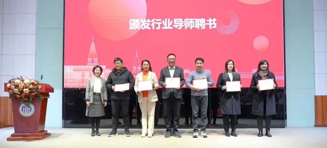 校地合作处(校友办公室)处长蒋晓丽为校友和业界人士廖洪海、罗宇、汪玮、王朕科、张蕊、刘公蓉颁发了行业导师聘书。行业导师与学院紧密合作,必将助力人才培养,进一步促进产学研的一体化协作,为社会培养更多优秀的人才。