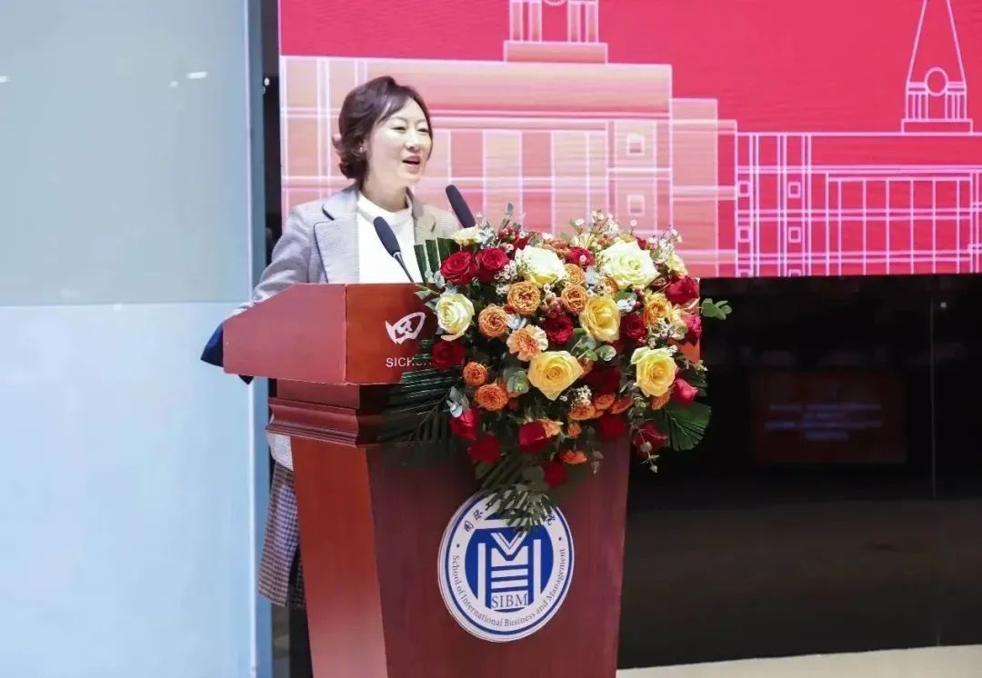 校地合作处(校友办公室)处长蒋晓丽宣读《关于成立四川外国语大学国际工商管理学院校友分会的批复》。
