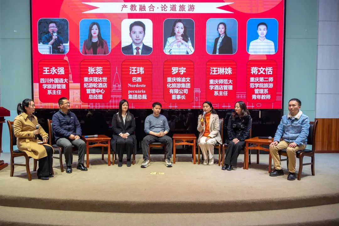 典礼还特别举办“产教融合·论道旅游”圆桌论坛。各界精英齐聚一堂,纵论数字文旅和文旅科技深度融背景下川外旅游管理专业国际化特色发展及产教融合人才培养。