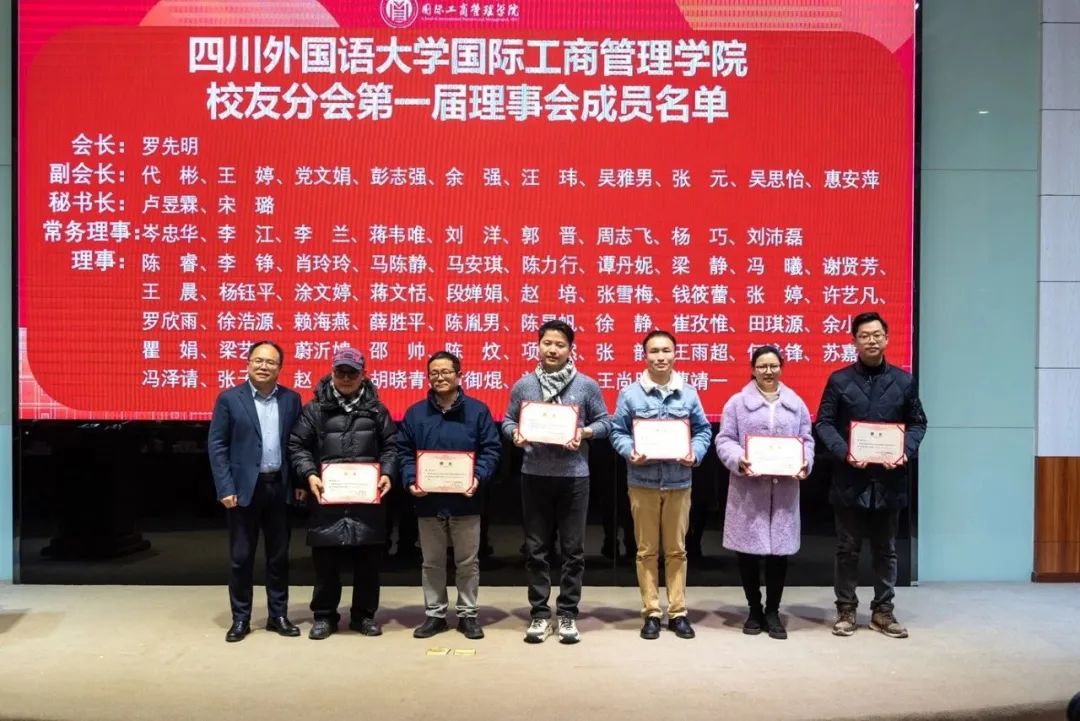 大会审议通过国际工商管理学院校友分会第一届理事会名单并颁发聘书。