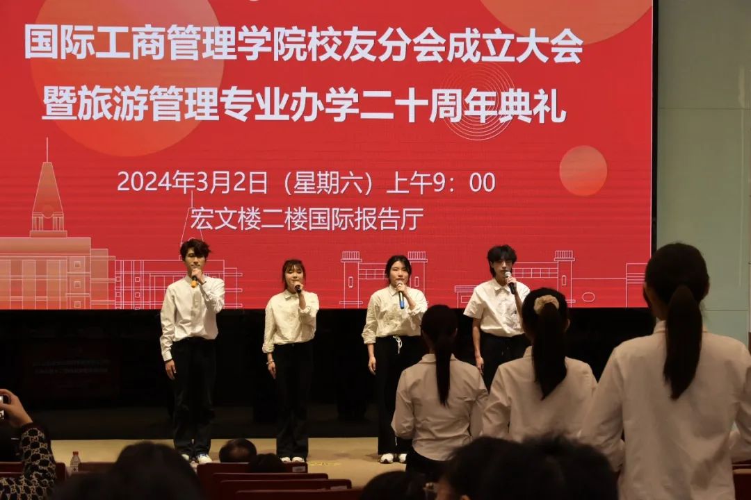 搭建平台,凝聚力量,共谋发展。3月2日上午9点,学校国际工商管理学院校友分会成立大会暨旅游管理专业办学二十周年典礼在宏文楼二楼国际报告厅隆重举行。