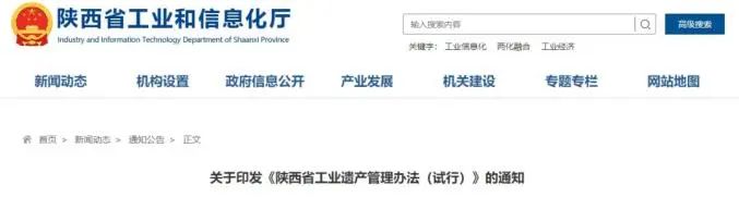 3月1日,陕西省工信厅发布关于印发《陕西省工业遗产管理办法(试行)》的通知,鼓励和支持公民、法人和其他组织通过科研、科普、教育、捐赠、公益活动、设立基金等多种方式参与陕西省工业遗产保护利用工作;支持开发工业旅游项目;鼓励社会公众监督并实名反映。