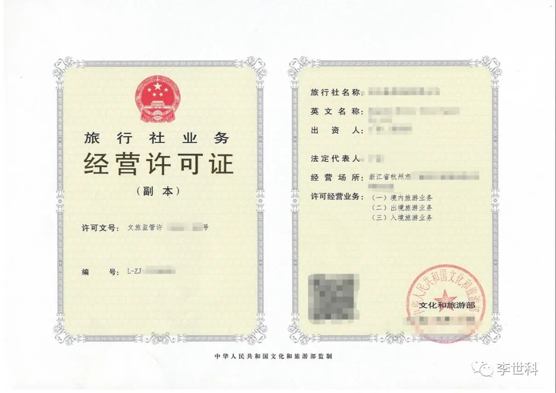 如果你直接收购正在经营的或不经营的、带有出境旅游业务许可证的旅行社,则可以直接经营!