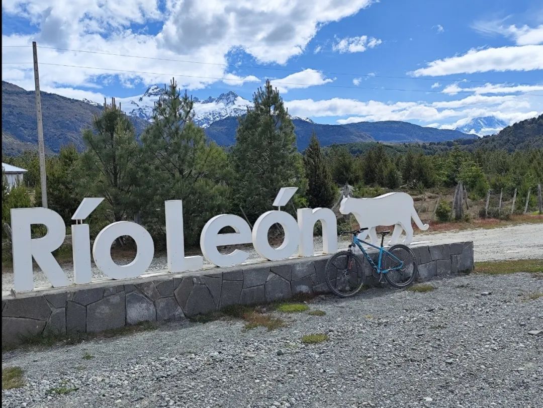 就这样,走走停停,我竟然在三小时之内赶到了Rio Leon,这座位于圣巴伦廷峰山脚下的美丽小村。在这里!有专程的死人冰川探险活动,一路深入圣巴伦廷山地区,来到位于其东壁脚下的冰川湖。为了纪念南部公路的骑行之旅,我为这辆“身经百战”的自行车合了张影。