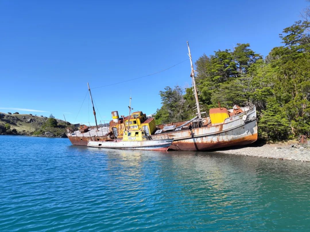 由于复杂的地形,在智利南部公路建好之前,湖畔几座小镇之间的交通往来都通过船只完成。然而,随着道路的兴建,这些交通船也只能成为时代的眼泪,融化在大湖的阵阵波涛中。这,就是当地著名景点——沉船点。