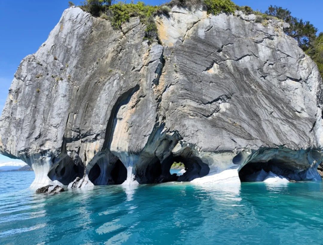 在这片大湖的西侧,有着一处最令人惊叹的自然奇观——大理石洞穴。由大理石形成的湖岸,在6200多年间的狂风与波涛的侵蚀下,形成了迷宫一般的溶洞群。日光下彻,影布石上,每当高纬度的阳光洒在湖面上,梦幻般的蓝光便会反射到洞穴中,将大理石壁映射成一片天蓝!细致的纹理,奇妙的形状,温柔的蓝光……泛舟其间,很容易就会被美得忘乎所以!