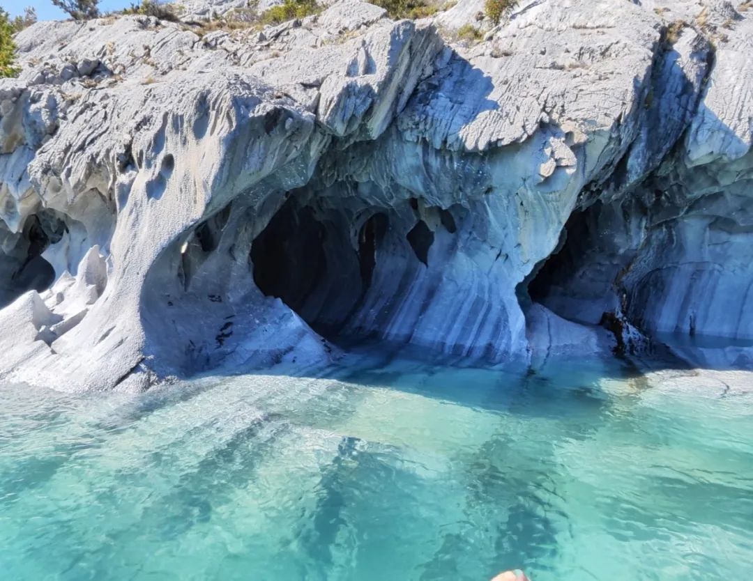 大理石洞穴与湛蓝的湖水▲