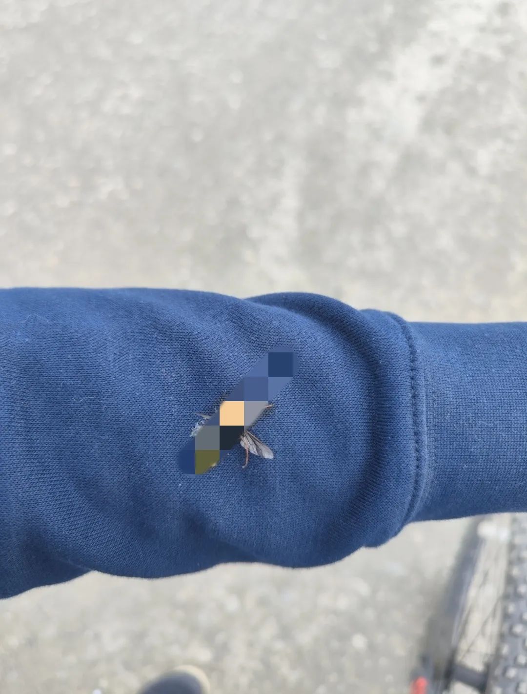 由于害怕这是某种马蜂,我不是很敢动手。但它们实在是太得寸进尺了!而且,它们那娇小的身姿,也看起来不太像什么“大人物”。于是,在某次停下来看手机导航时,一只马蝇歇在了我的左臂上,试图开始叮咬。忍无可忍的我咆哮着一手机砸上去,瞬间将其拍成了肉泥……