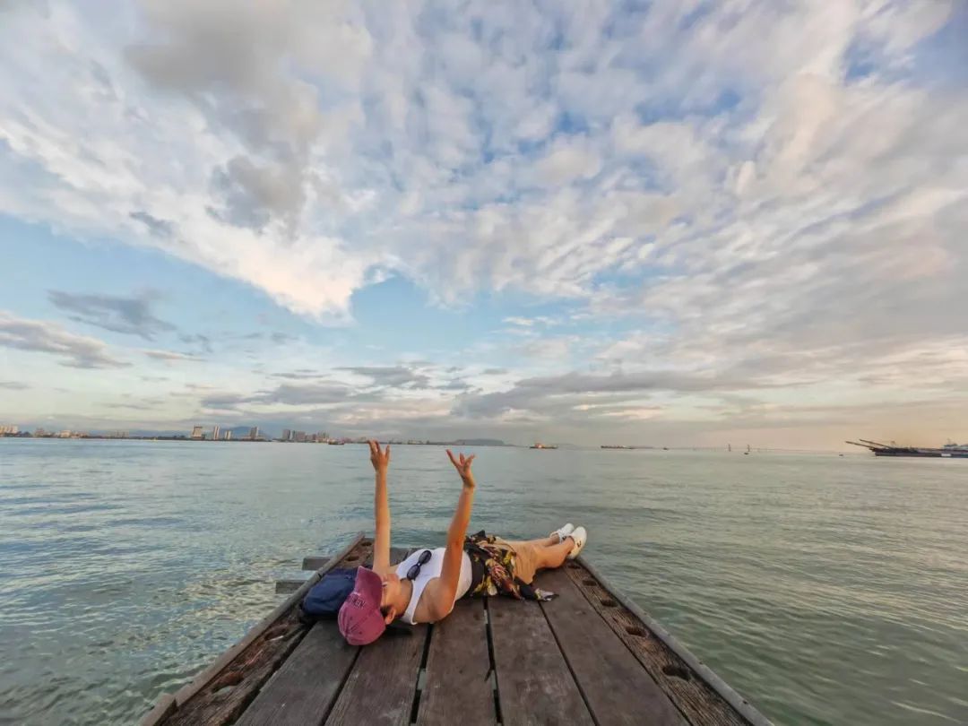 被这里无限广阔的视野吸引,躺在水天相接的桥头,身下是不断拍打的海浪,眼前是广阔透亮的蓝天。