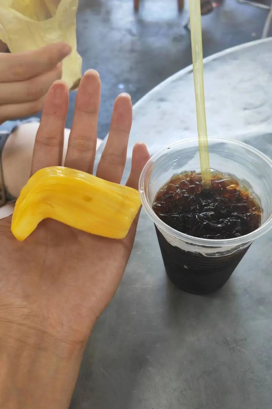 我俩对热带水果的兴趣并没有多浓厚,直到在中亚茶室旁边的菜市场遇到了波罗蜜大叔。大叔是华人,看是中国的游客来了兴趣,超热情的给我介绍自家的果树,然邀请我6月份再来吃当季的榴莲。(还加了微信哈哈)