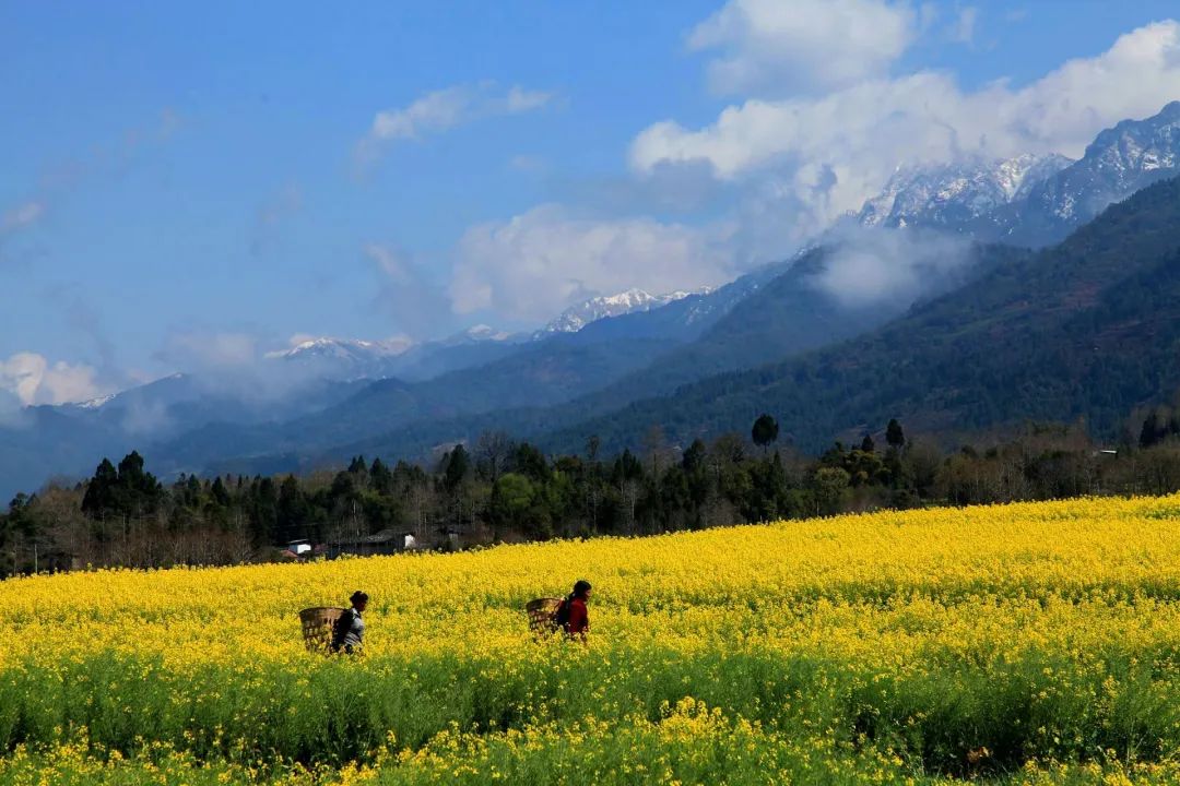 (腾冲市界头油菜花海远眺高黎贡山)