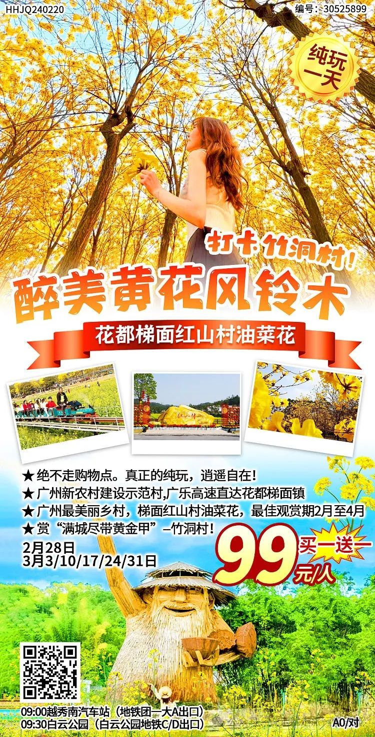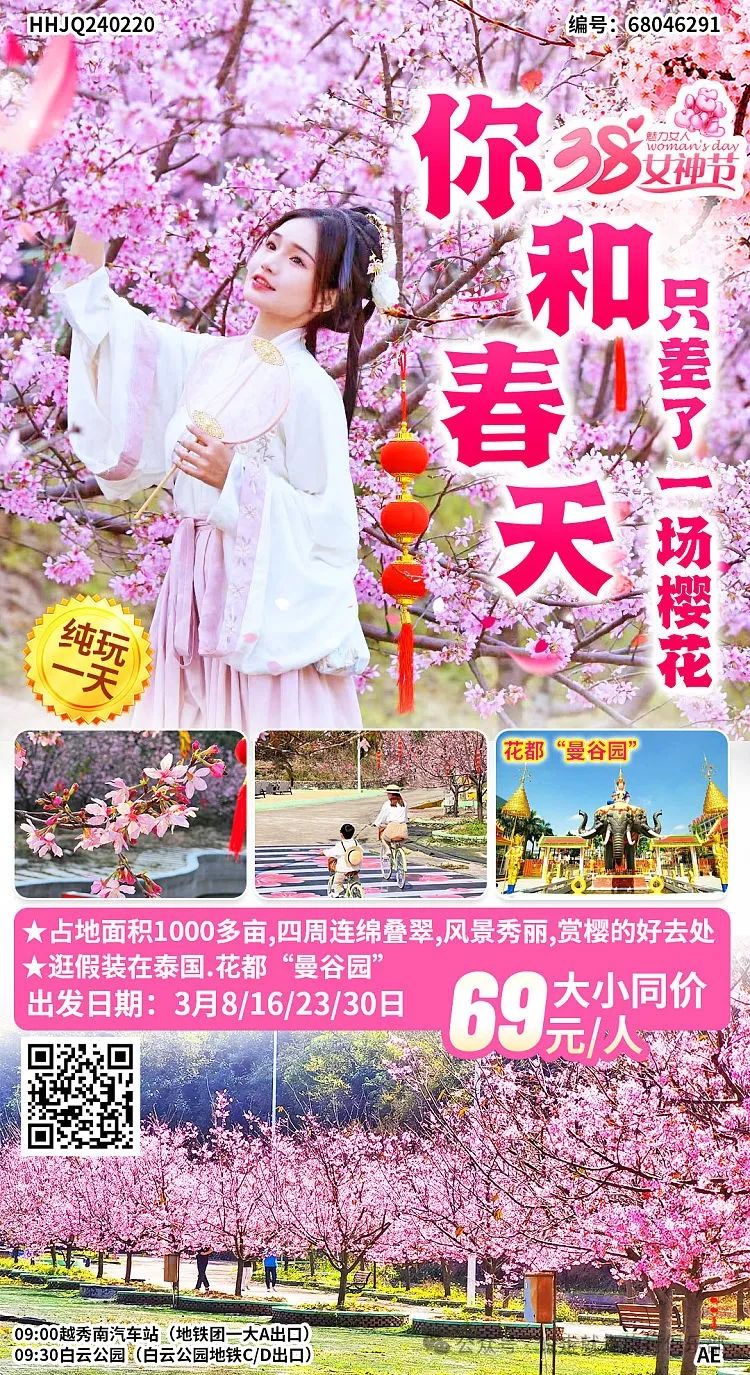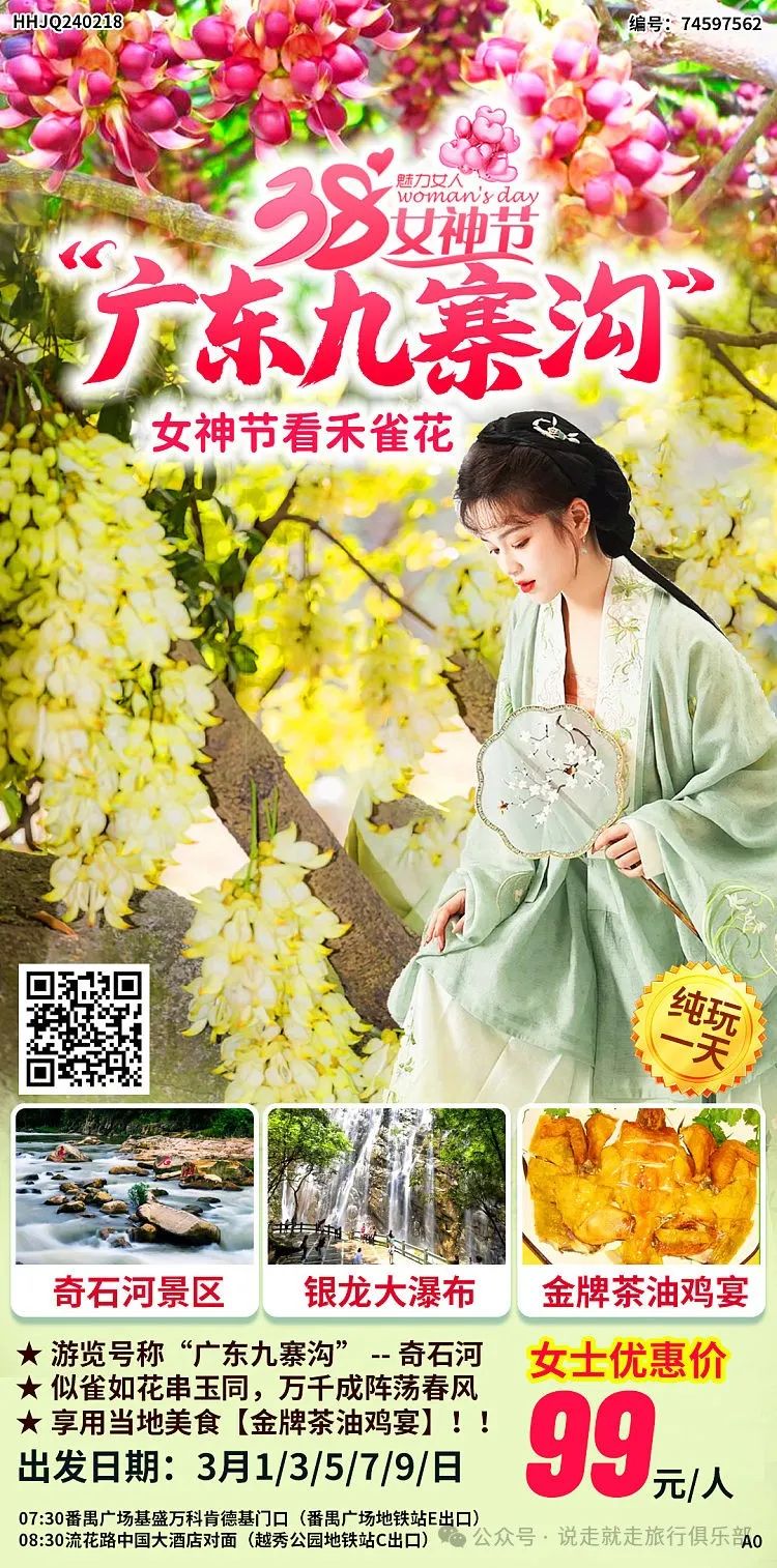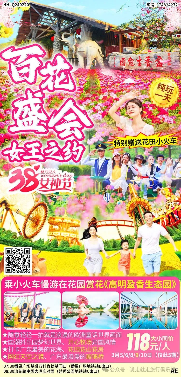 广东省内游【广州出发·1日跟团游】花开富贵映红颜·女神佳节共赏春