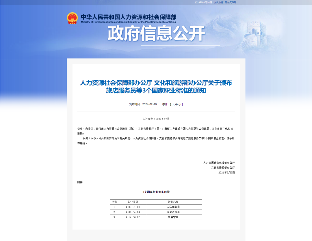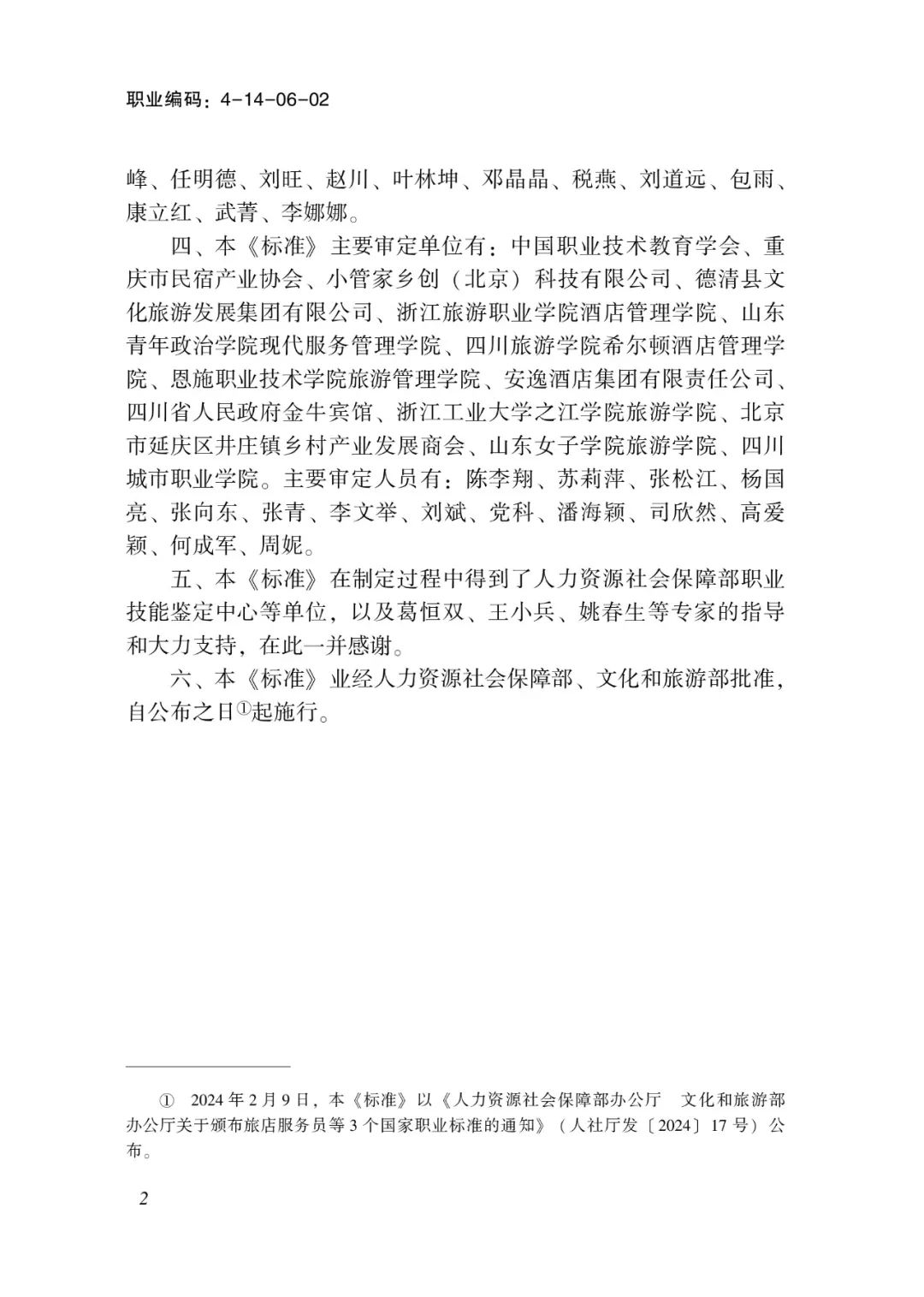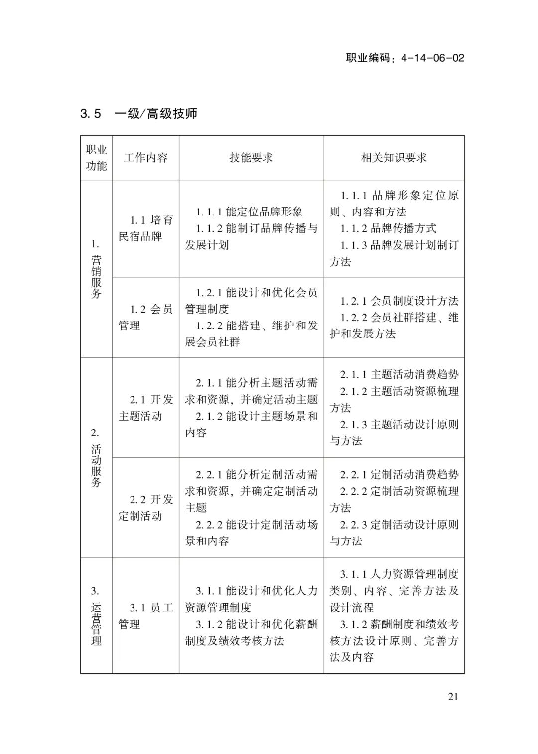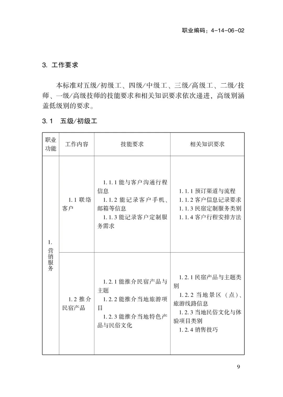 民宿资讯丨《民宿管家国家职业标准(2024年版)》发布:民宿管家共设五个职业技能等级,最高级别为:一级/高级技师