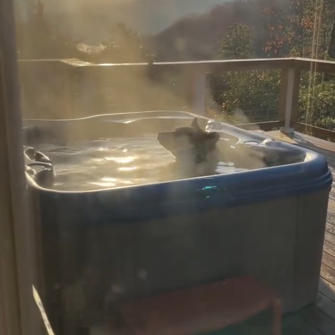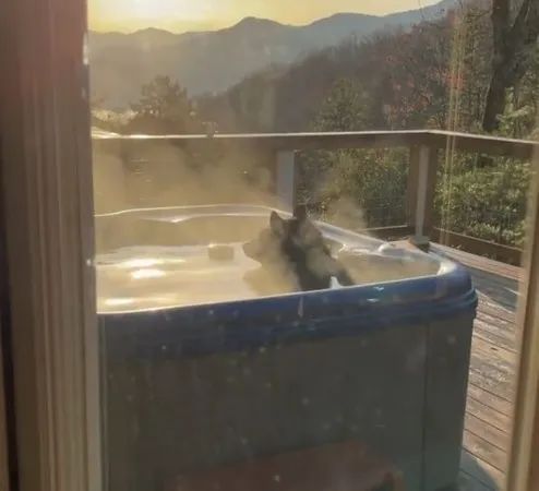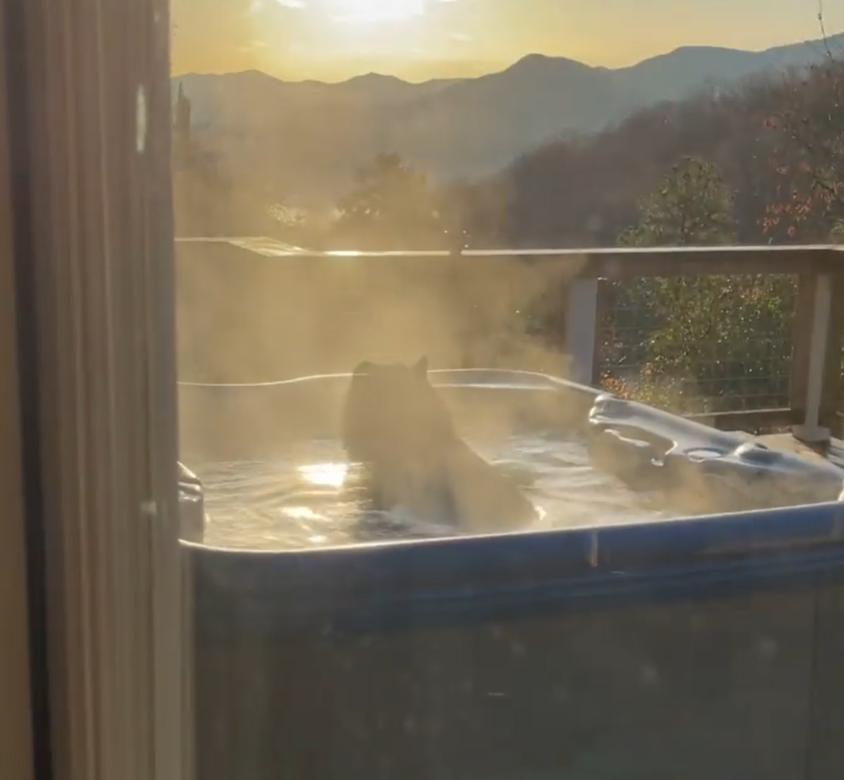 劳累了一整天,能够泡个舒服的热水澡真的是一大享受!美国一位网友陶德(Todd Trebony)日前和家人到田纳西州的郊区旅游,并租了一间附有露天泡汤浴池的度假小屋准备好好享受一下,没想到竟吸引一位重量级的不速之客,让全家人都吓了好大一跳!