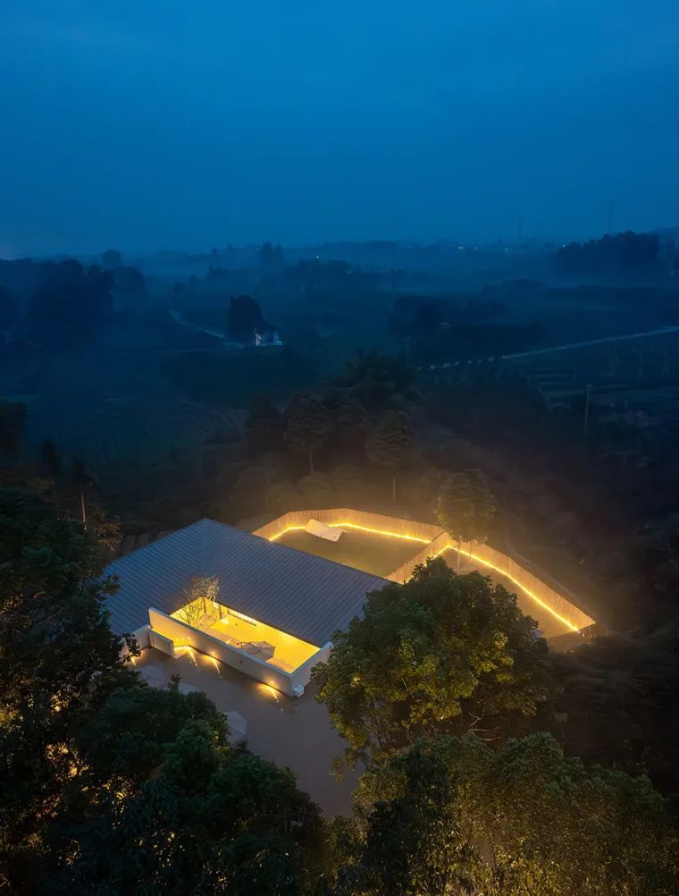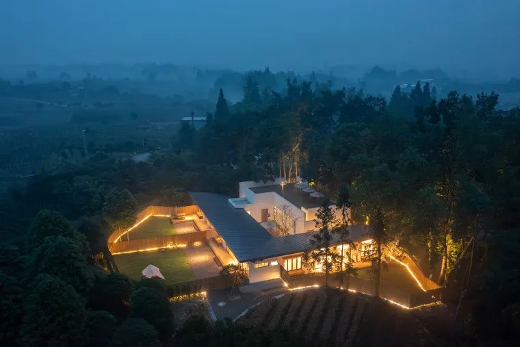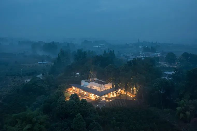 外向型的院落布局强化了建筑与自然之间的互动,使得客房可以充分利用外延空间,极大地增加了室内宜居感与舒适感,让自然光线、微风、空气填满建筑的每一个角落。“川西林盘”是四川平原独有的建筑样式,发端于古蜀文明时期的“川西林盘”,更是天府文化及农耕文明的精神原乡,核心要素构成即为林、田、水、宅;茅河镇项目设计过程中,我们便充分借鉴了其自然古朴的居住环境形态。“川西林盘”构筑所蕴涵的天人合一哲学,使得栖居不仅仅体现在身体的安放,更是心灵的澄静闲适、最大程度的回归自然;置身于其间的诗意情感,隐而不现却又那般真实动人。期冀于未来,蜀地朴素本真的乡土建筑文化,能带着其千年积淀的精神特质与生活美学,在今时今日的建筑实践中焕发出全新的生命力。诚如德国建筑师戈特弗里德·玻姆所言:“建筑的未来不在于无止境地填充地面,而是将活力与秩序带回我们的城镇。”