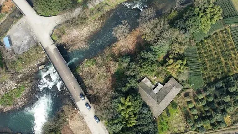 我们翻转了传统四合院封闭内向的布局,重塑出一种外向型的院落空间。注重室内空间与外部环境的联结互动,使得居住者更为直接地面对自然山水中潺潺流淌的溪涧、绿意盎然的茶田和郁郁掩映的树林。同时借鉴传统“川西林盘”民居构筑哲学,营造出自由、静谧、避世的居处空间。项目位于四川雅安市茅河镇白鹤村,场地西侧有一条小溪,从南侧的小桥进入场地,可见原始场地中一处废弃的老屋;整个老屋所在宅基地占地一亩左右,与西侧小溪之间相隔一片树林,其东侧与北侧为一片茶田。场地四周绿树掩映环绕,岩间溪水潺潺流淌,四野遍布绿色茶田,动景静景皆具,生机盎然相映成趣。业主希望依托场地这一方幽林胜境,打造并推具有自助式乡村度假屋、河畔露营等多种业态复合的微度假项目。根据业主要求,原始场地可建设范围内需设置公共区域和三个独立客房小院。
