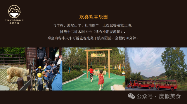 入住远骁·莫干溪谷别墅(含欢喜欢喜乐园套票),可凭管家发放的萌宠乐园&木乐园套票、小火车票入园游玩。园区内有200亩景观麦田、7个农业联动大棚、融创欢喜欢喜乐园、露营基地,集民宿、乐园、农场、餐饮等文旅业态于一体,与莫干山风景区、庾村景区、开元森泊度假乐园、上渚山奇幻谷、下渚湖国家湿地公园等景点形成20分钟旅游车程圈,是江浙沪游客休闲度假的优选。