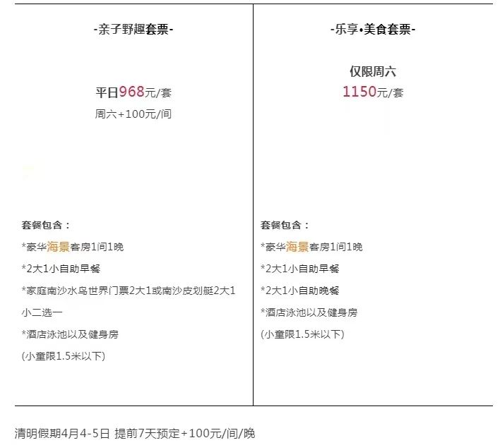 *升级房型补差价:商务楼层客房+100元/晚,儿童主题海景客房+200元/间/晚,