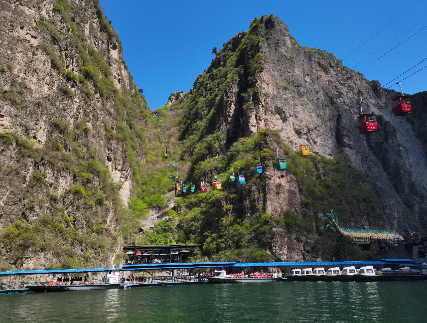 坐着缆车可以更全方位的领略龙庆峡的风景