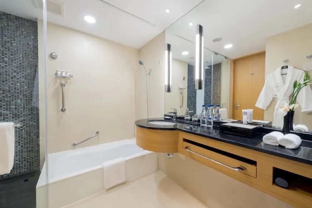 房间配备有陶瓷浴缸,游玩回来后可以放上一缸热水,私享惬意的泡澡时光!奔波劳累一天后洗个澡,度假感拉满了!