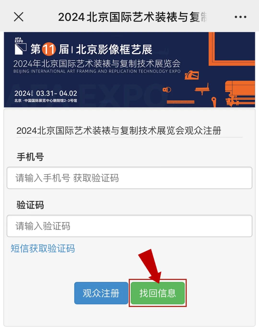 Step 2 输入手机和验证码后点击“找回信息”