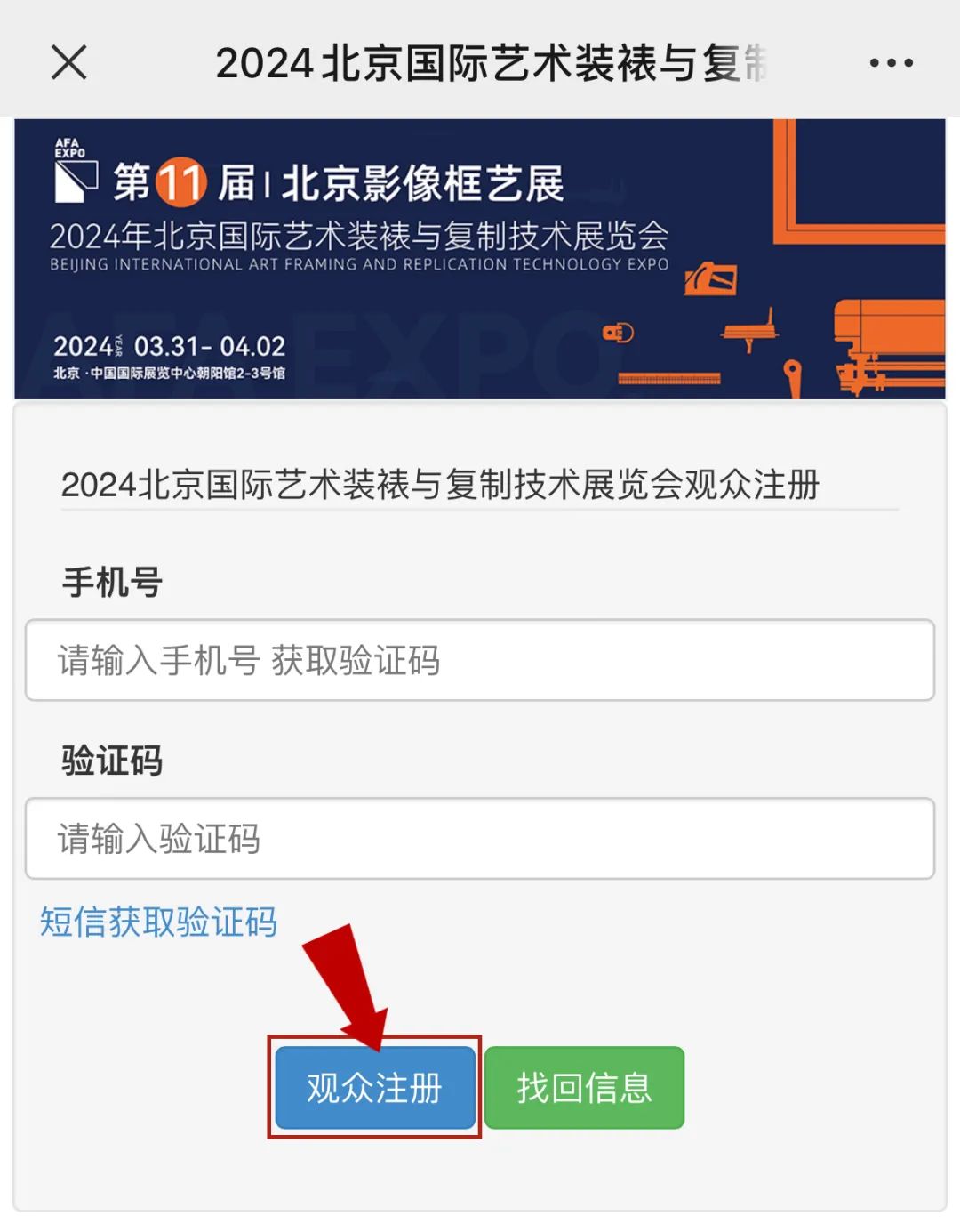 Step 3 输入手机和验证码后点击“观众注册”