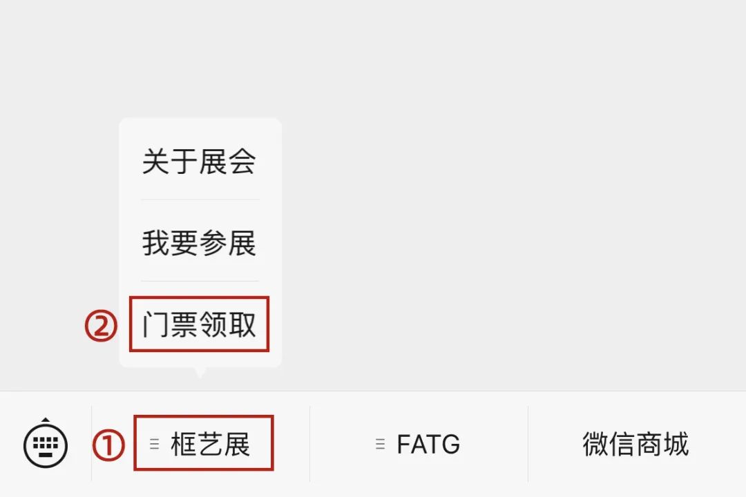 Step 1 在公众号下方菜单栏中点击“门票领取”