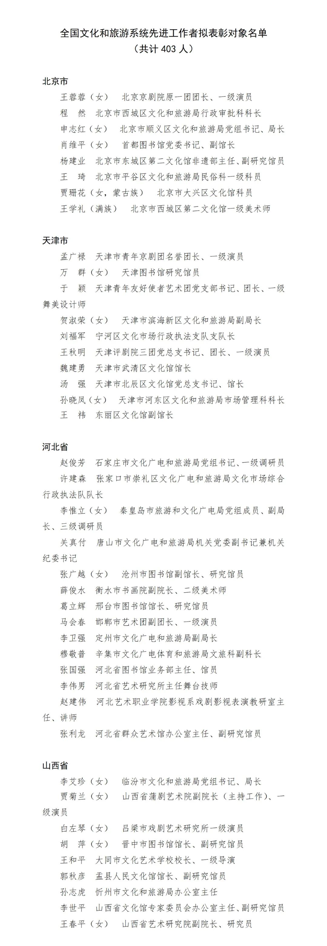 关于全国文化和旅游系统先进集体、先进工作者和劳动模范拟表彰对象的公示