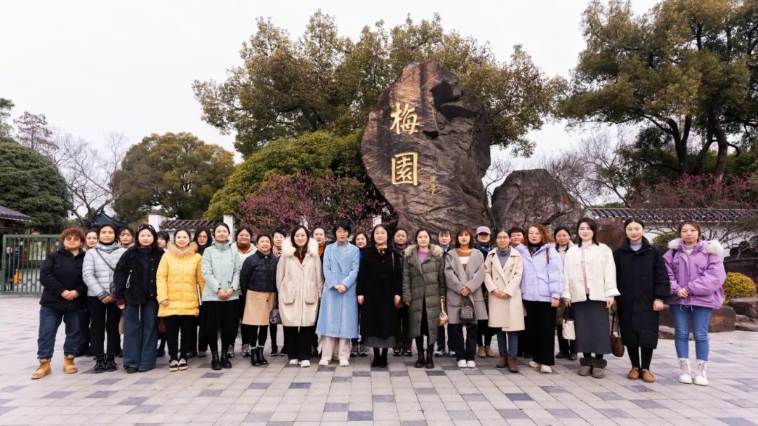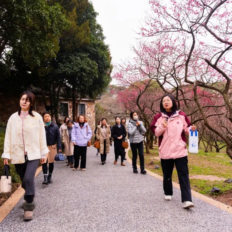 春天的梅园,粉梅和白梅交相辉映,散发着独特的韵味。参加活动的女职工代表们漫步于梅树下,赏梅花、闻梅香,享春日美景,了解荣氏梅园深厚的文化底蕴,感悟荣氏精神、梅花品格,汲取奋进力量。