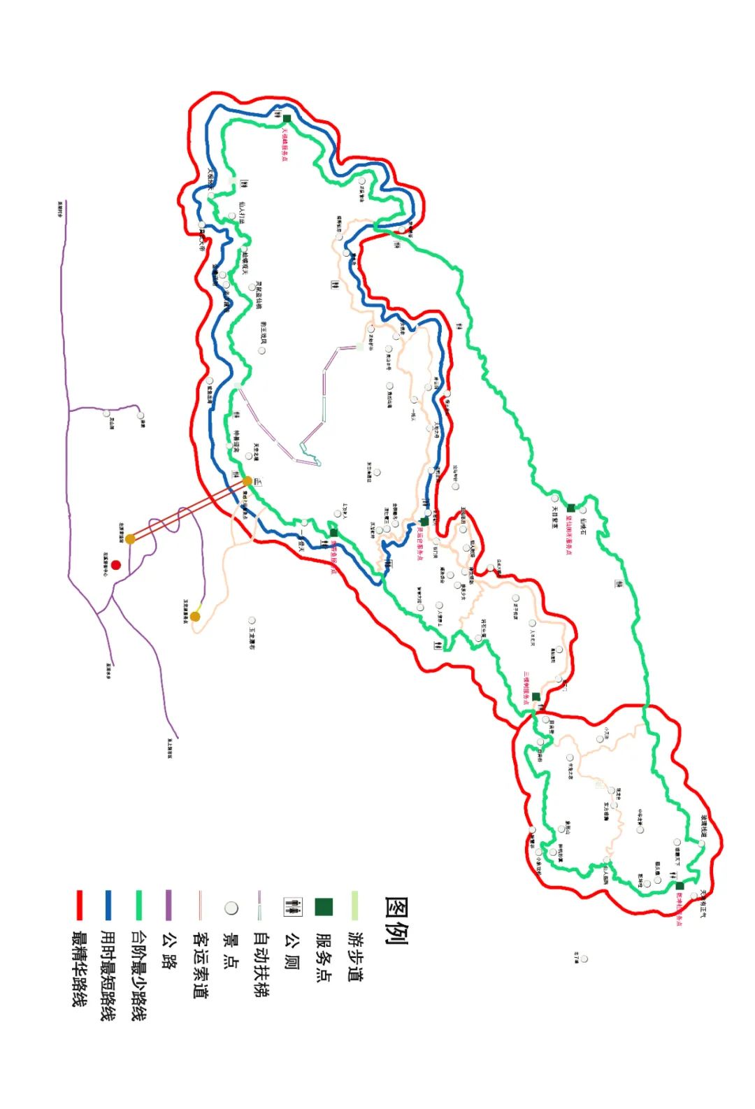 从211栈道出发,经过天空之境、真武大帝、天梯峰等景点,再从绿野仙踪入口进入新栈道,一路游览老妪护孙—灵山圣母—熬烈出海—猴王出山—双蛇出洞—神女望郎—大圣归来—南大门,接着从南大门到三棵树服务点,又沿雀兔之恋支线入口上新栈道,游览小天池景点后下至玻璃栈道,最后往985路线返回索道上站。