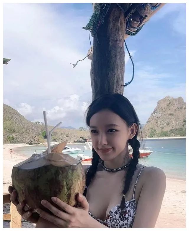 程潇晒海边度假照,网友惊呼:这个椰子真大啊