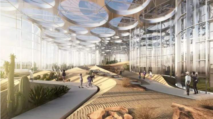 温室花园将展现不同的环境场景和气候,为游客带来真切的“自然穿越”:置身其间可以感受多肉世界中的峡谷、沙丘和多肉植物;热带雨林馆的沼泽、瀑布和珍稀植物;云之花园内的数字洞穴、果树和鲜花。