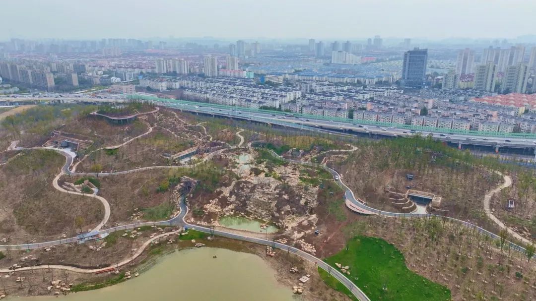 从山底到山顶覆盖种植土及多种植被形成人造山体
