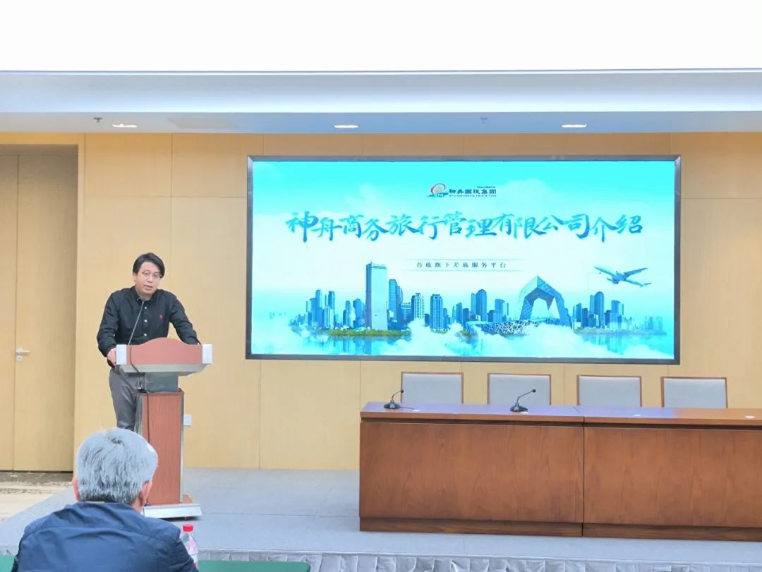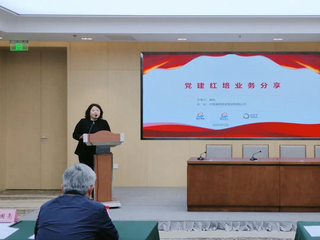 会上,康辉集团郭怡和神舟国旅续岩2位同志分别从党建红培和商务旅游两个方面做了经验交流发言。