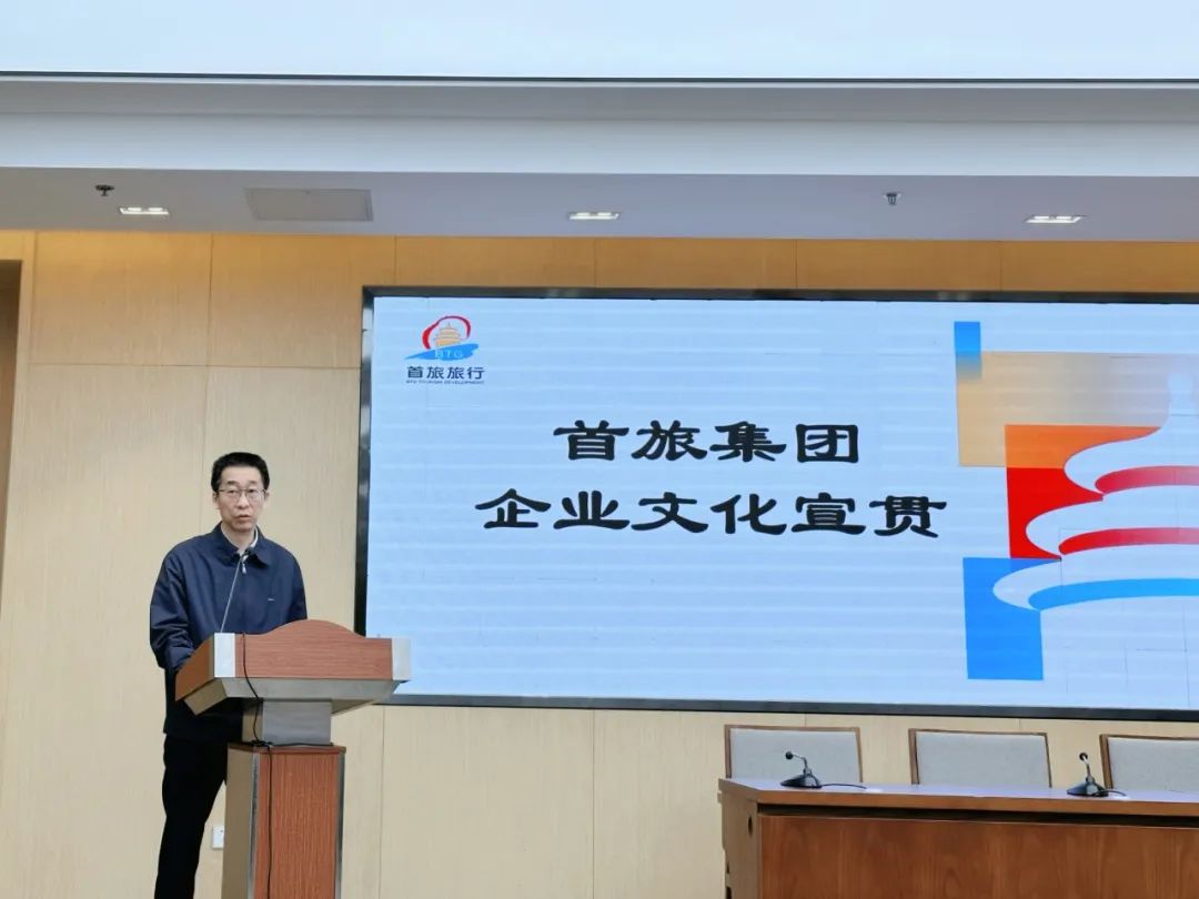 王尚文同志将新时期首旅集团企业文化对参会人员进行宣贯。从企业愿景、企业使命、企业精神、企业文化核心价值观、企业文化行为标准与规范等五个方面进行了深度解析。