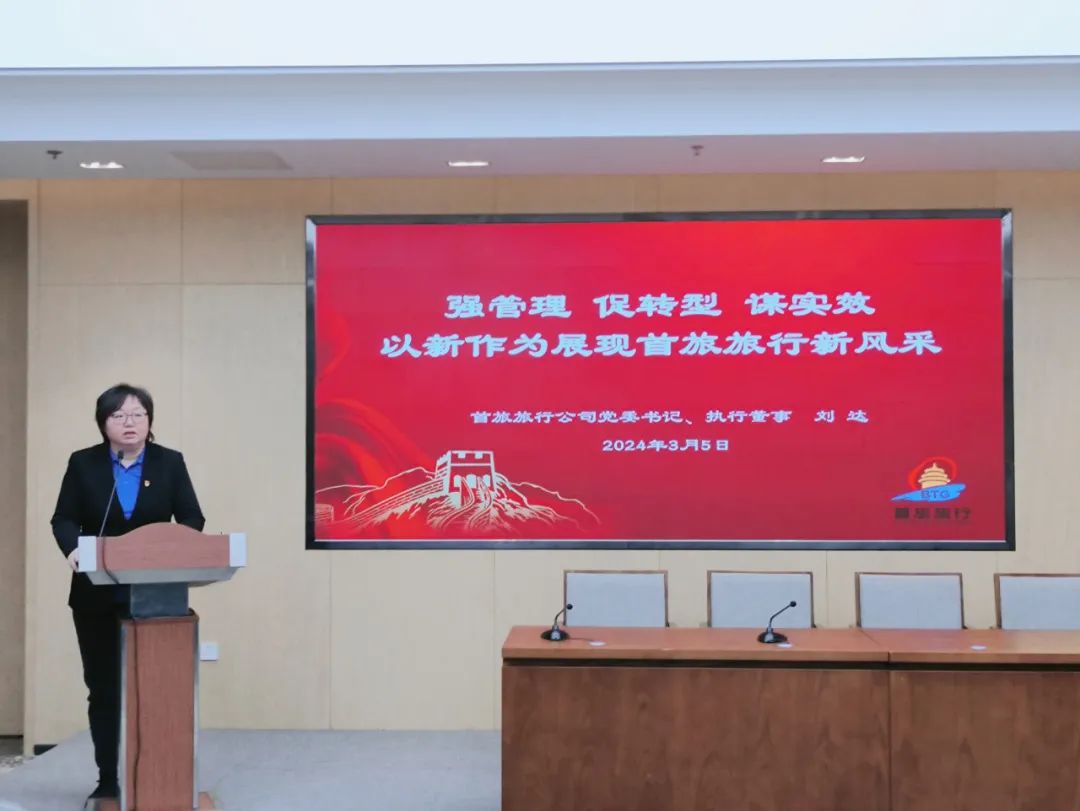 刘达同志以“强管理,促转型,谋实效,以新作为展现首旅旅行新风采”为题做讲话,对公司发展提出三方面意见,要求以更加务实的举措,推动2024年工作开好局、起好步。