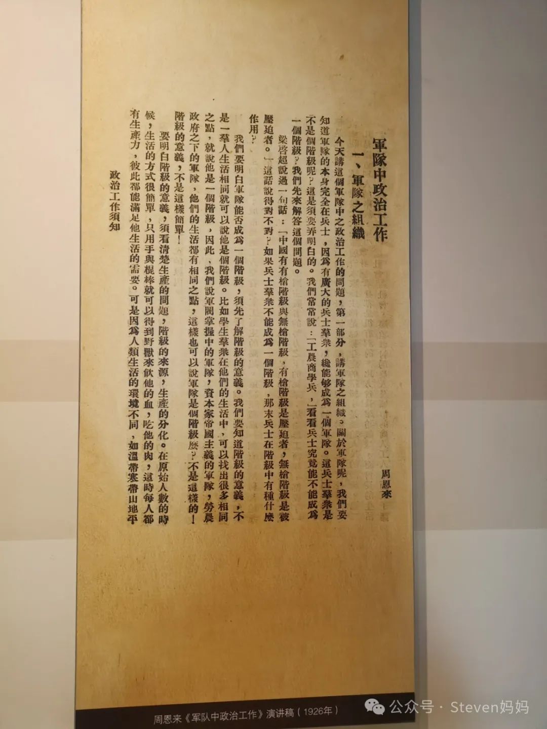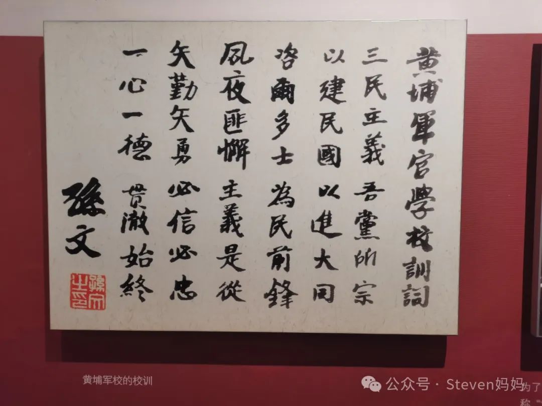 以下是我在孙中山大元帅府拍摄下来的黄埔军校校训和周恩来1926年《军队中政治工作》演讲稿。