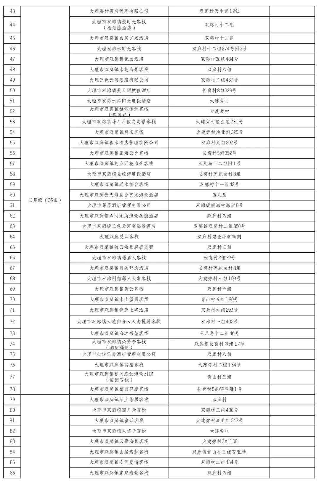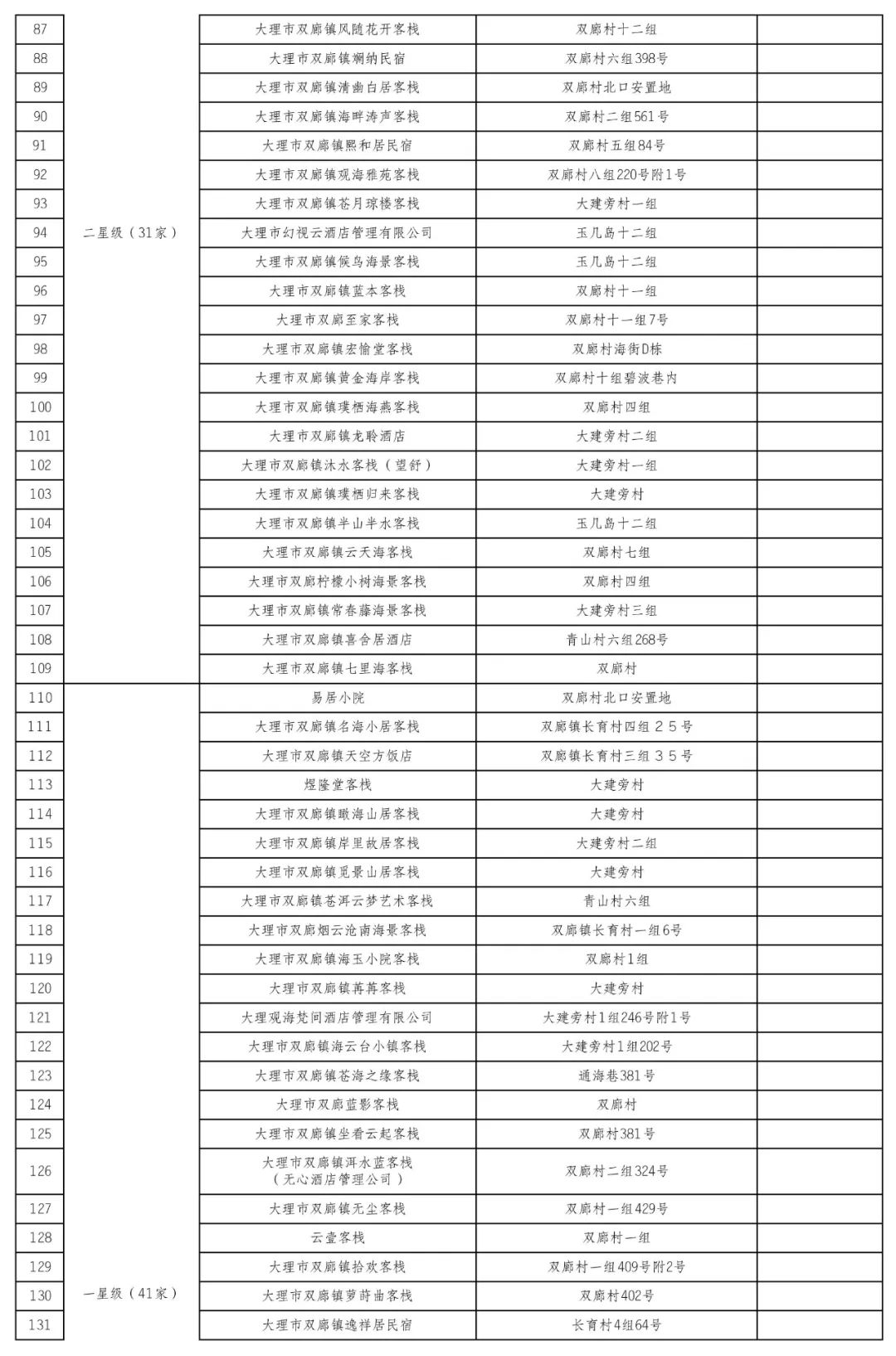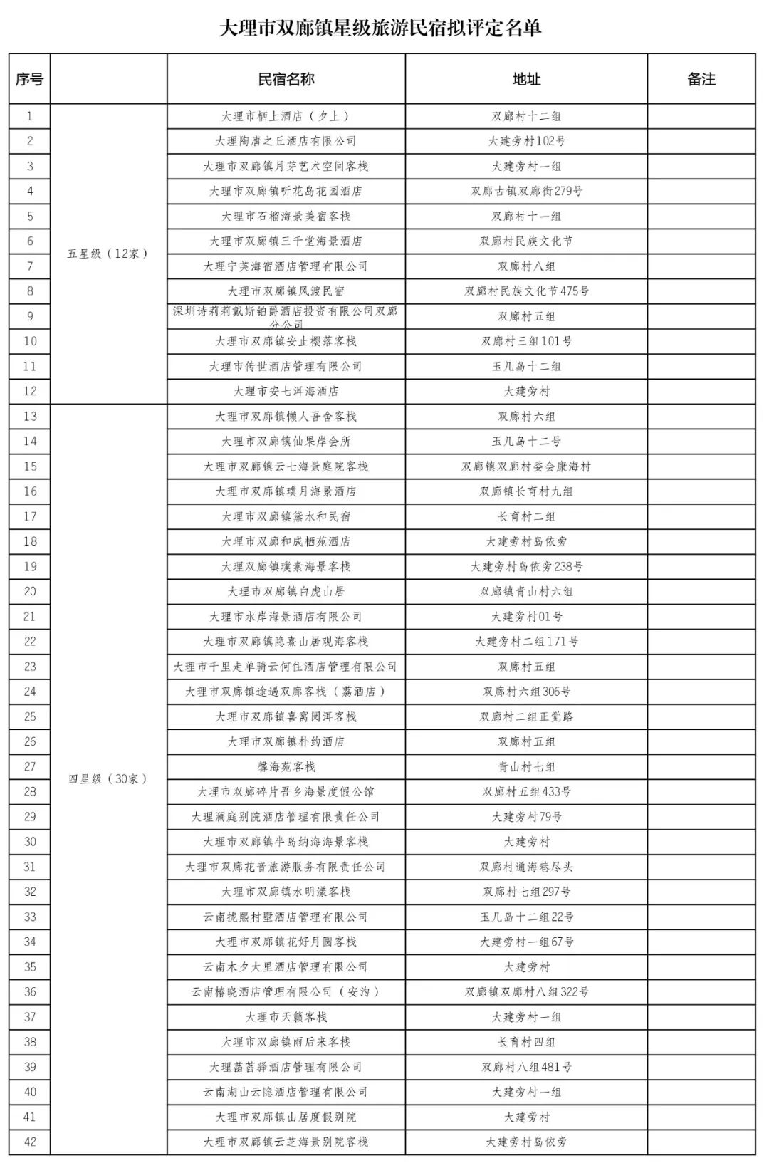关于大理市双廊镇星级旅游民宿拟评定名单的公示