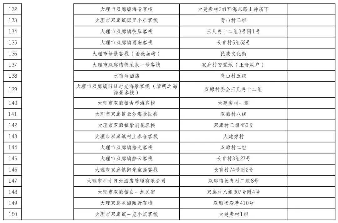 为推动旅游住宿设施品质化、特色化发展,提升经营服务质量,结合旅游民宿规范管理工作,市民宿办在大理市双廊镇组织开展了星级旅游民宿评选试点工作,经业主申报、实地评分、汇总审核后,形成大理市双廊镇星级旅游民宿拟评定名单。现将大理市栖上酒店等 150 家拟评定五星级至一星级名单予以公示。