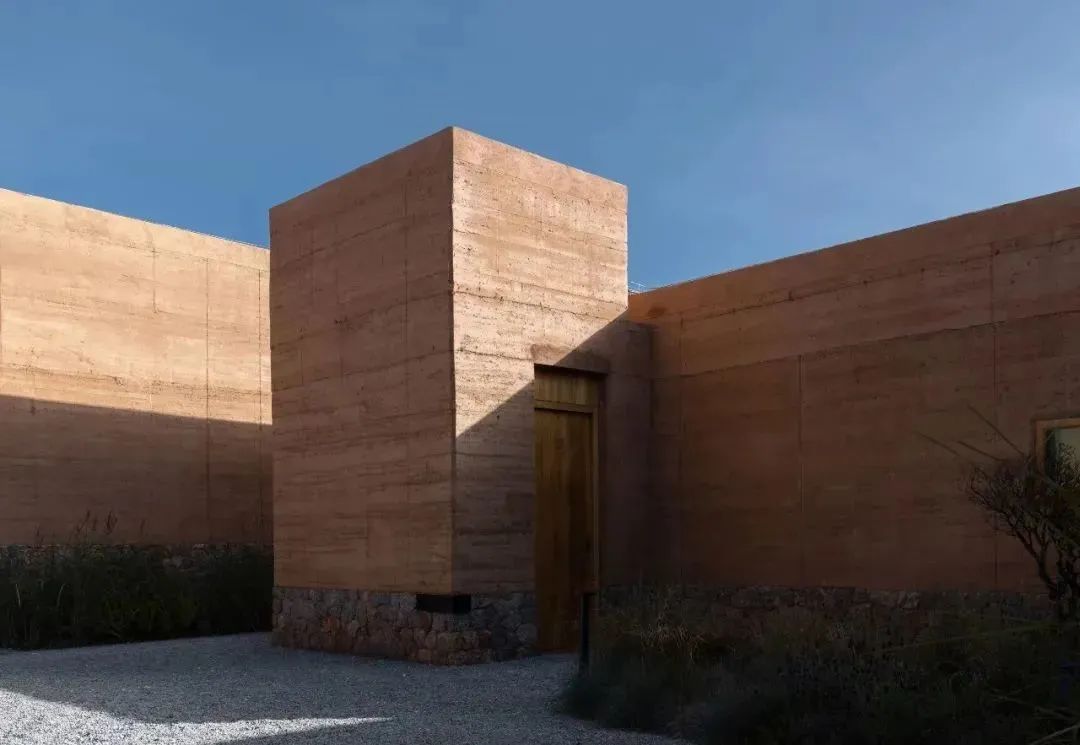 最终实验出来的成品极大地提高了夯土的力学性能和耐水性能,夯土墙面完成后在阳光下甚至呈现出淡淡的金属光泽,甚至有油画的感觉,材料的精致度得到了很大的提升,是直接作为室内完成面使用的。