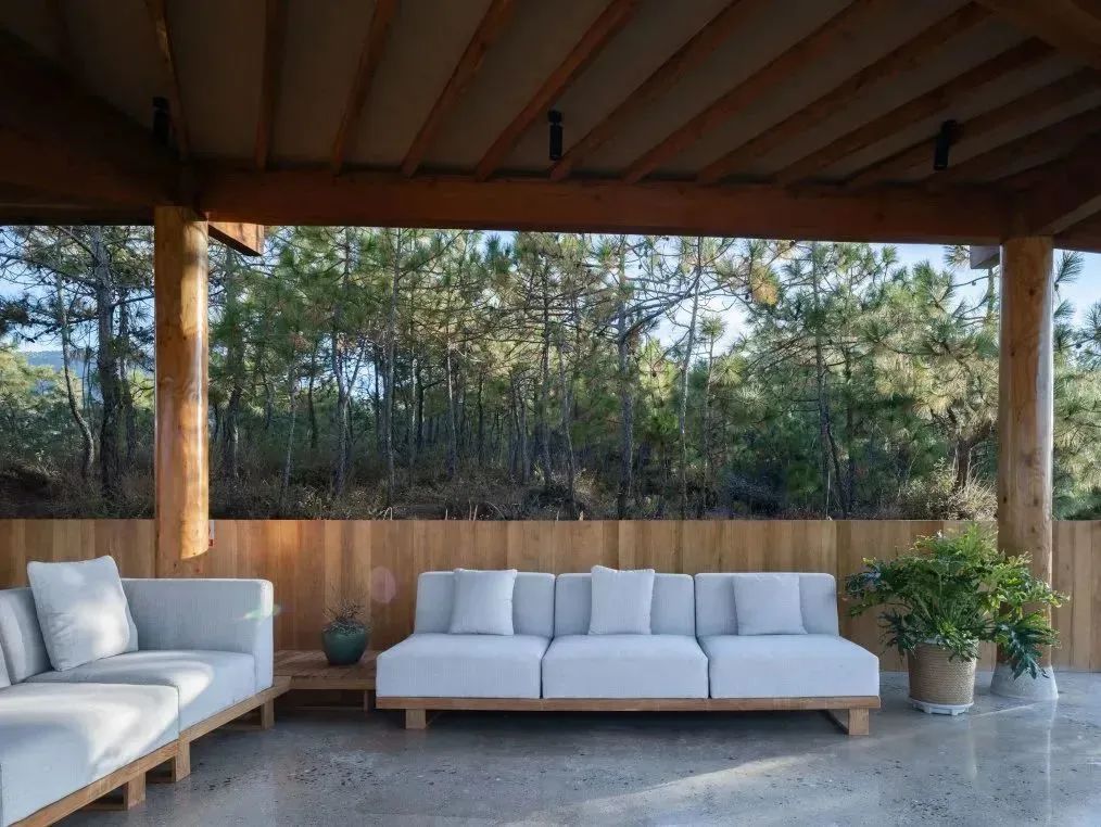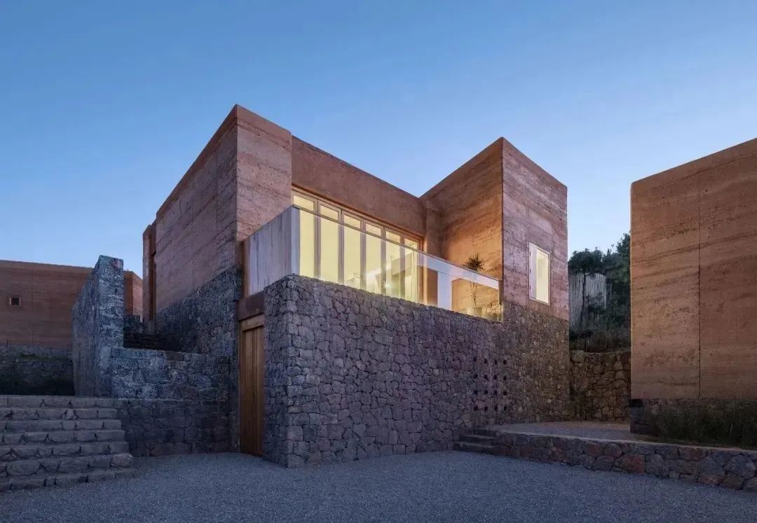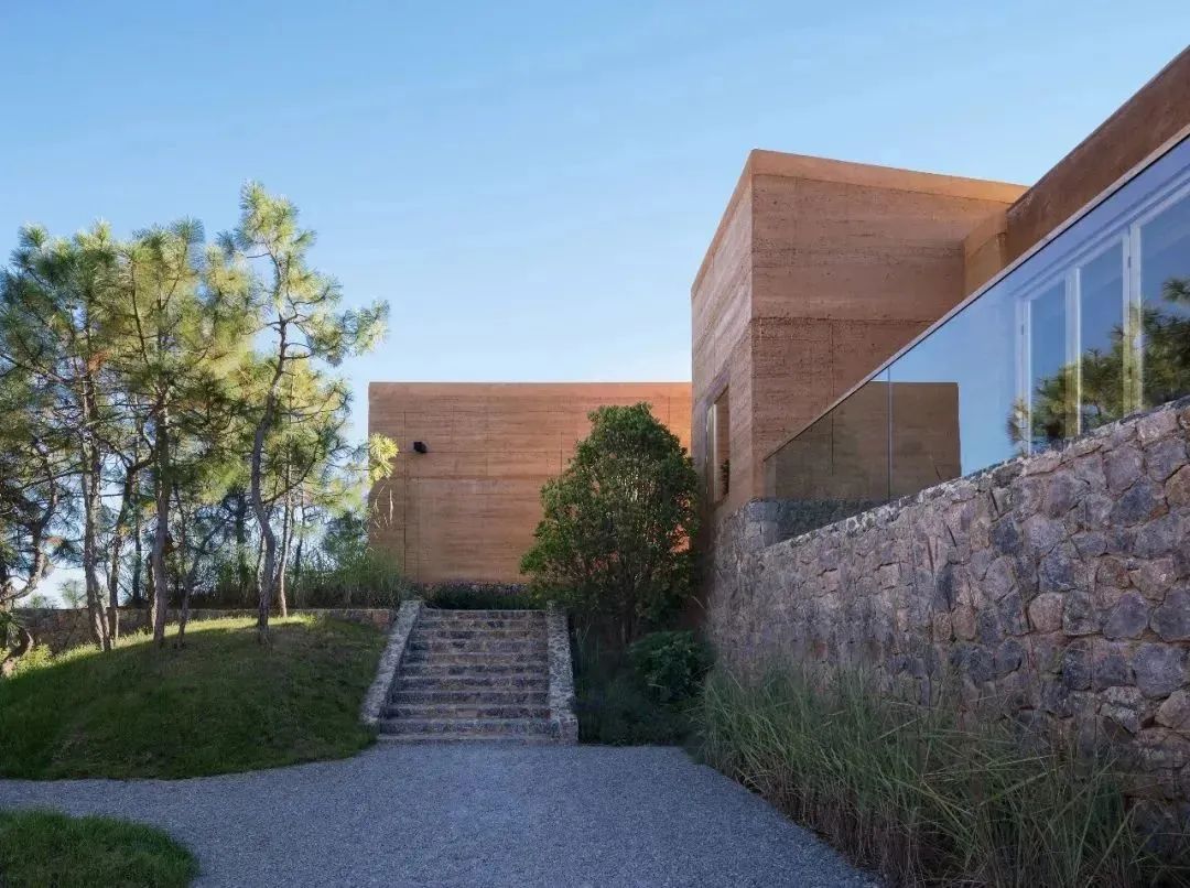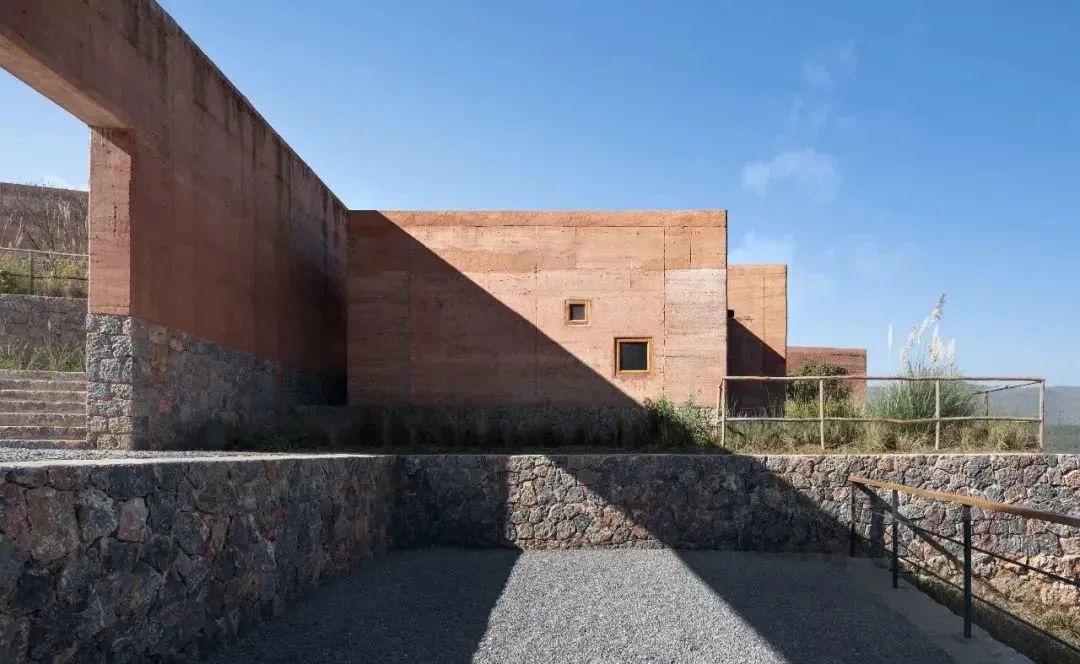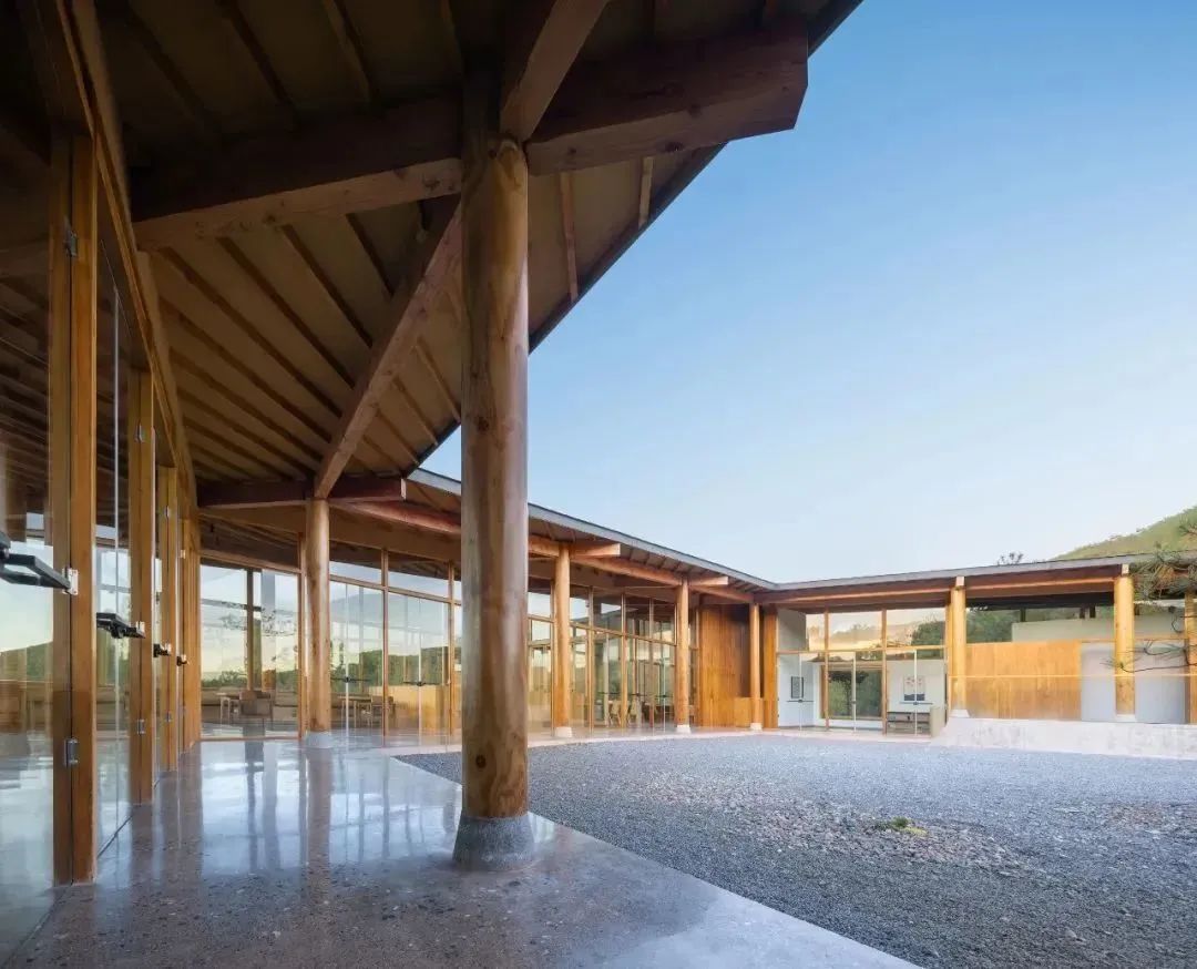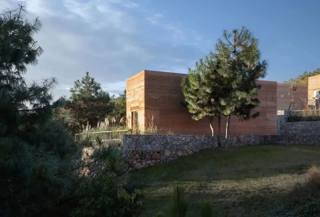 我们调研了很多在地的材料及其做法,例如砌石,木构,砖石等等。最终决定公共空间用木,通过木构的框架结构,形成更开放通透的公区,居住空间用土,通过实体墙体的围合,形成更私密更厚重的私区。