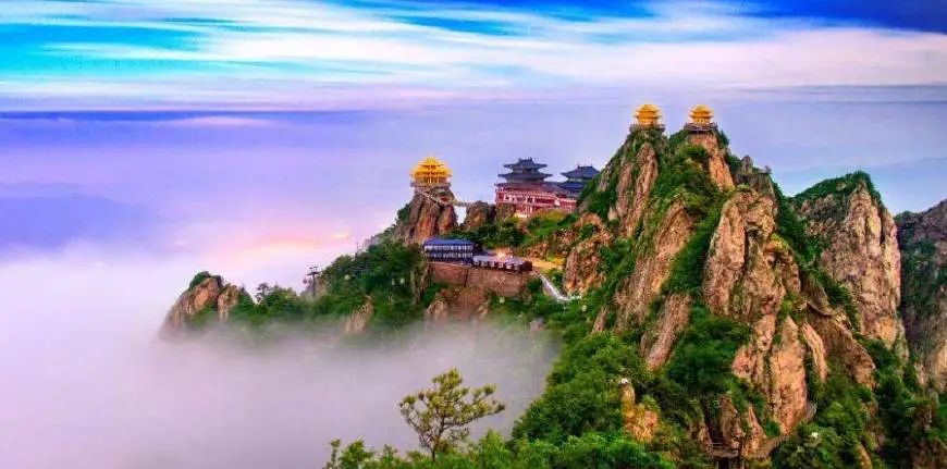 老君山,“天下无双圣境,世界第一仙山”。位于十三朝古都洛阳的栾川县县城东南三千米处。八百里伏牛山脉的主峰,玉皇顶海拔2217米。距今已有两千多年人文历史,是道教中历史最长的山脉。春秋时期,被公认为道教始祖的老子李耳到此归隐修炼,使之成为“道源”(道教起源地)和“祖庭”(祖师之庭)北魏始于其上建老君庙以纪念。唐贞观十一年(637年),唐太宗派尉迟敬德重修景室山铁顶老君庙,并赐名为“老君山”。明万历三十一年(1603年),明神宗诏谕老君山为“天下名山”,并发帑金建殿,成为是历史上唯一被皇封为“天下名山”的中国山脉