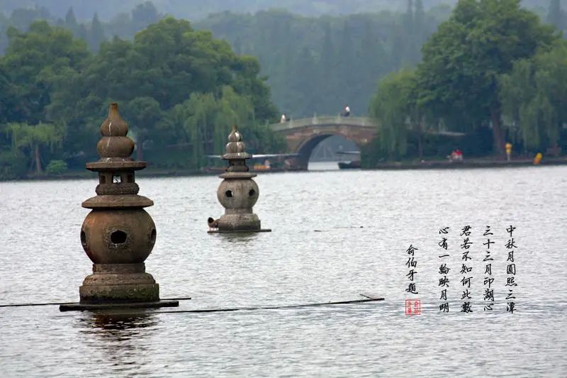 漫步苏堤,置身于两湖之间。远水如烟,近水着了微雨。雨水落进湖里,泛起一阵阵银灰色。这些细纹搅乱湖水原有的平静姿态,使这里的一切,更加生趣盎然。
