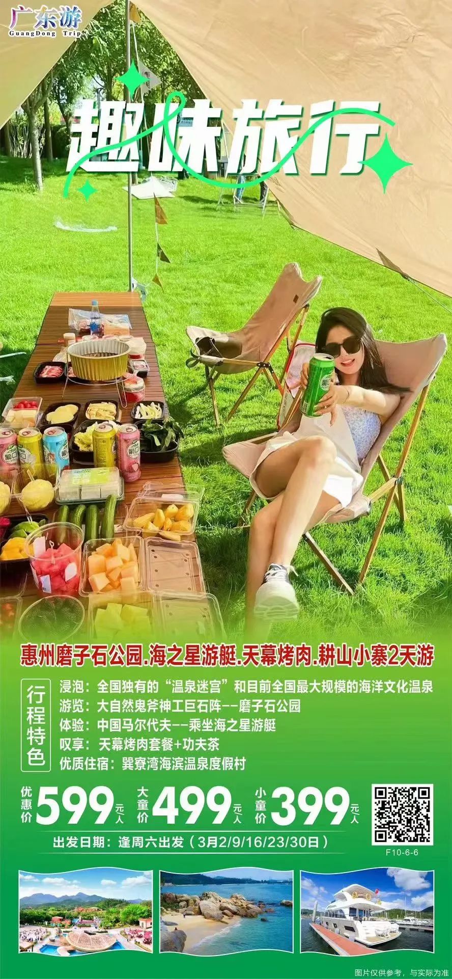 每周六深圳出发惠州跟团二日游599元,惠东奇幻巨石磨子石公园、玩转耕山小寨、品尝营地烤肉、天幕叹功夫茶,海之星游艇、海滨温泉酒店