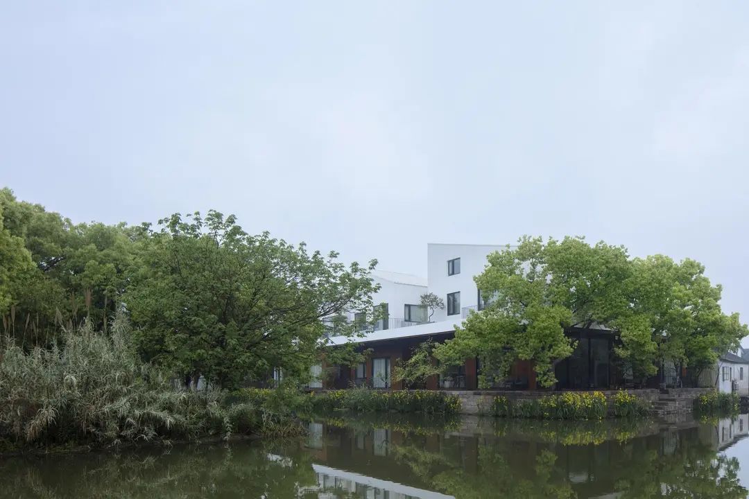 江南半舍民宿是一处坐落于江苏省昆山市计家墩村的现代简约风格民宿,周围环境宁静,三面被小河环绕,绿植遍布,其设计巧妙地融合了文艺清新元素以及传统江南水乡的建筑韵味。